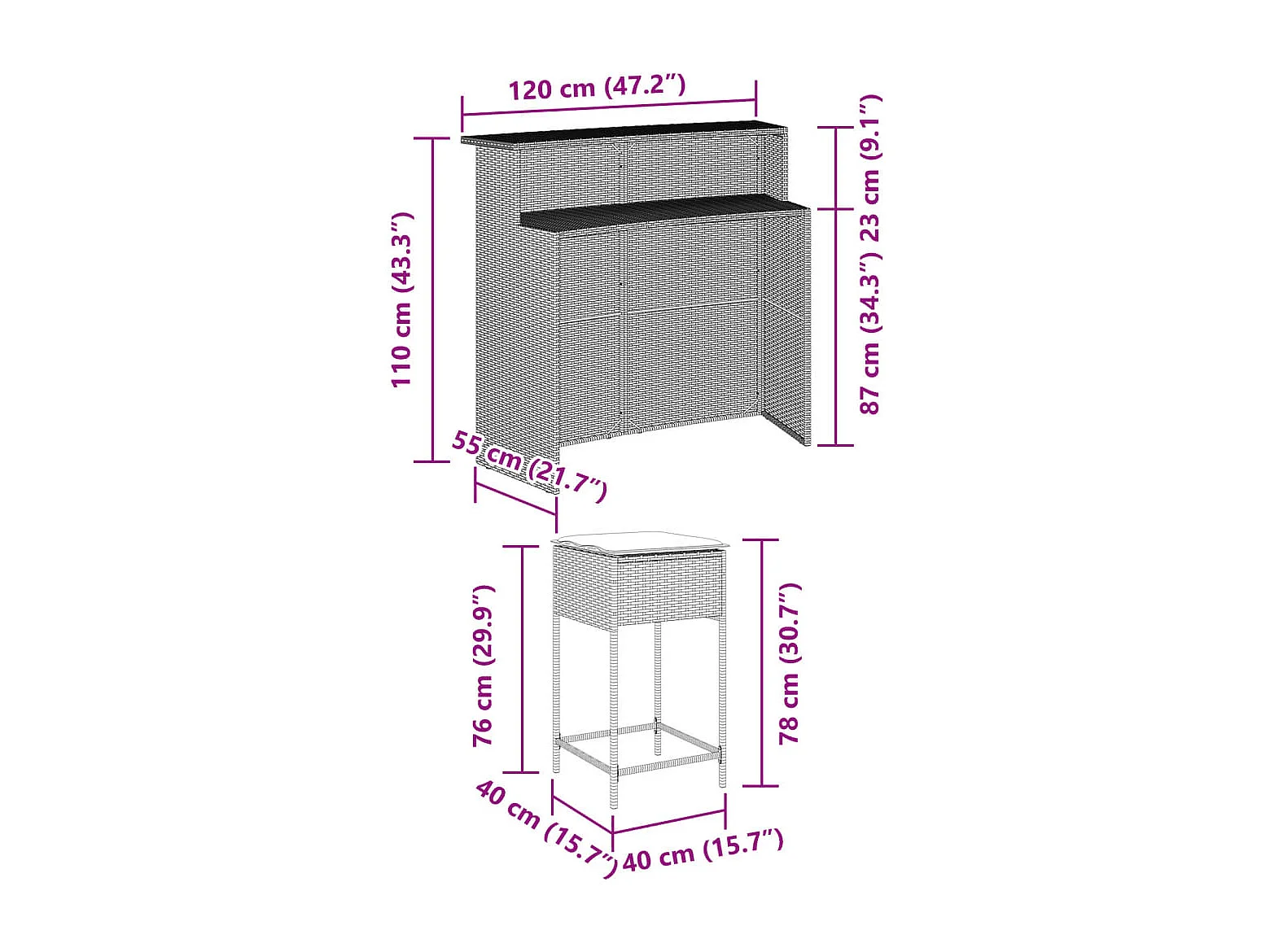 Inarin Ensemble de bar de jardin 5 pcs avec coussins gris poly rotin