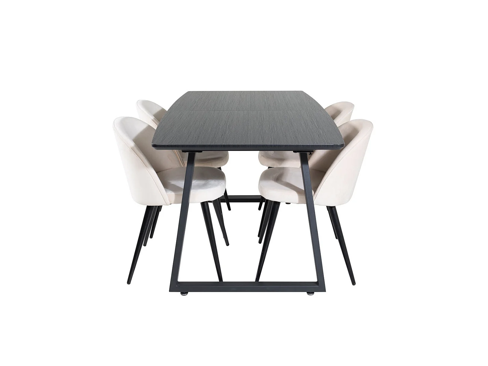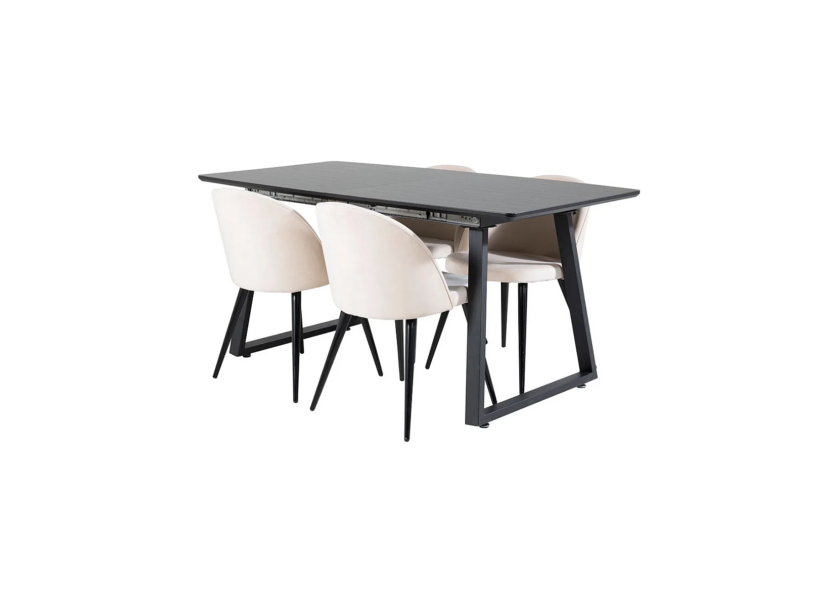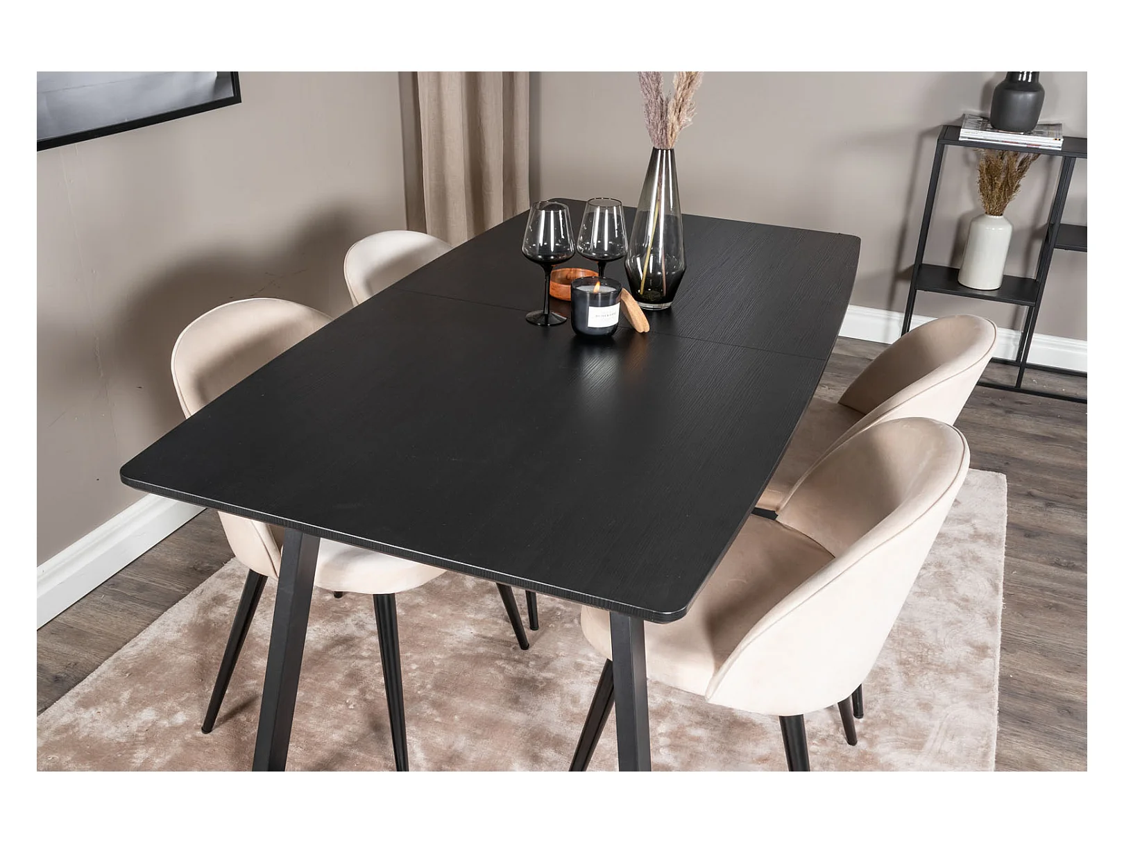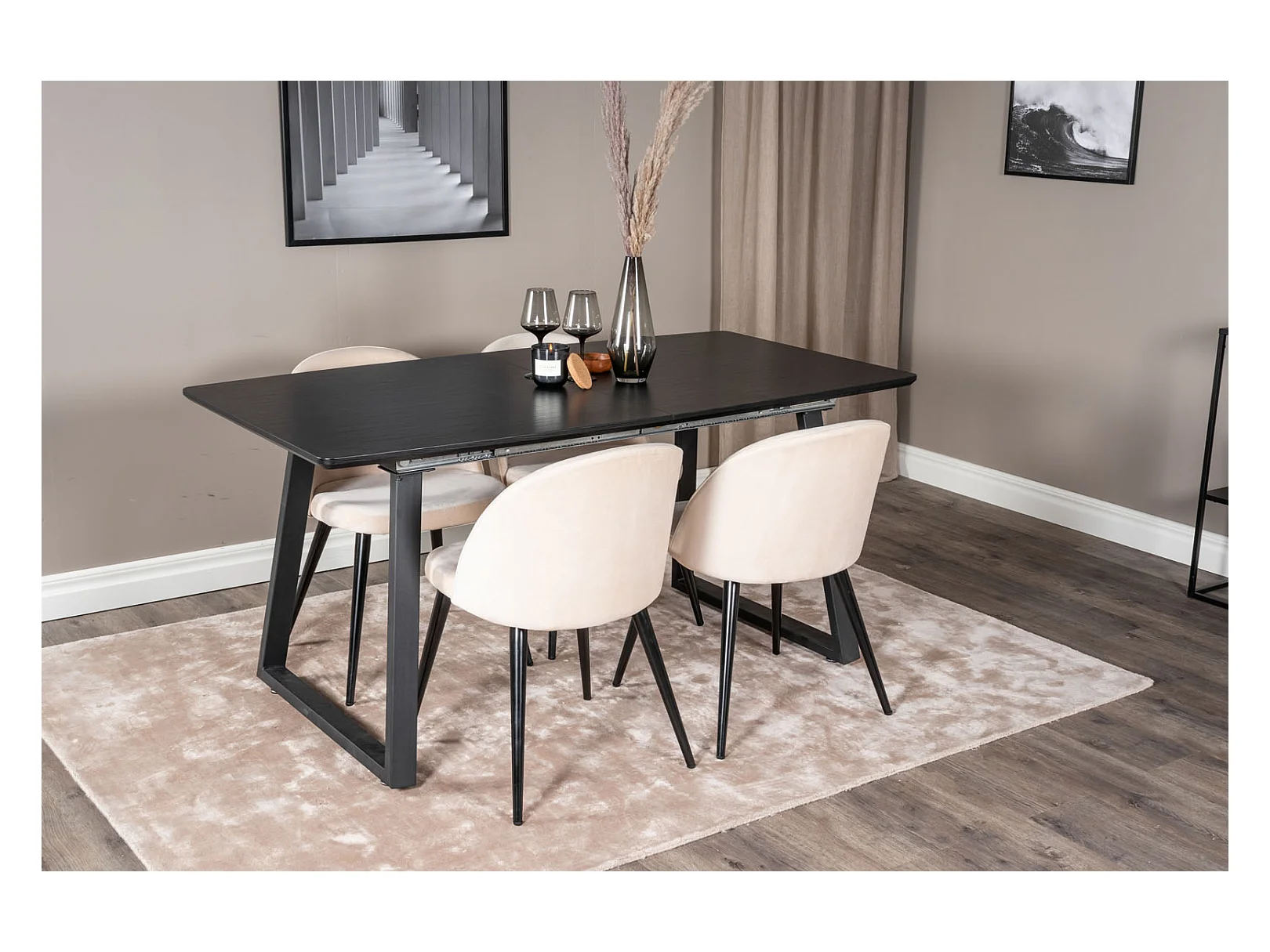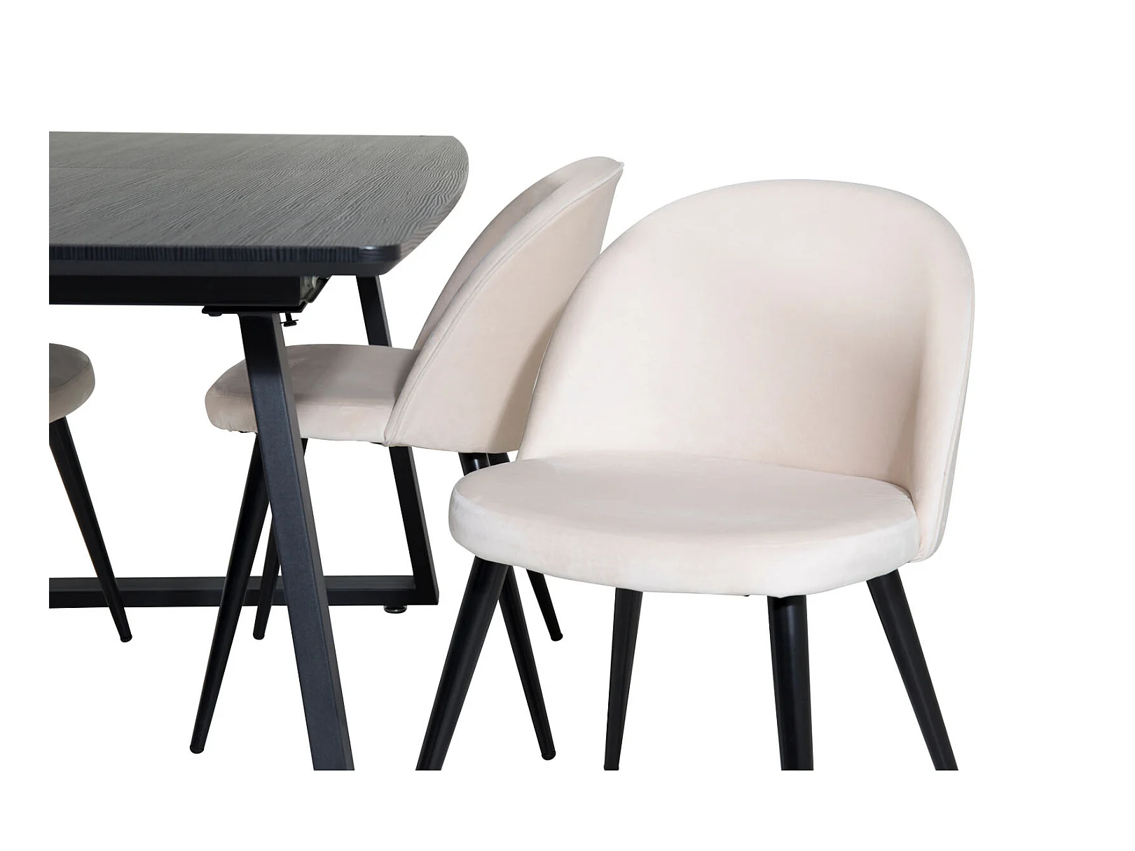 IncaBLBL ensemble table, table extensible longueur cm160 / 200 noir et 4 Velvet chaises Velours beige, noir.