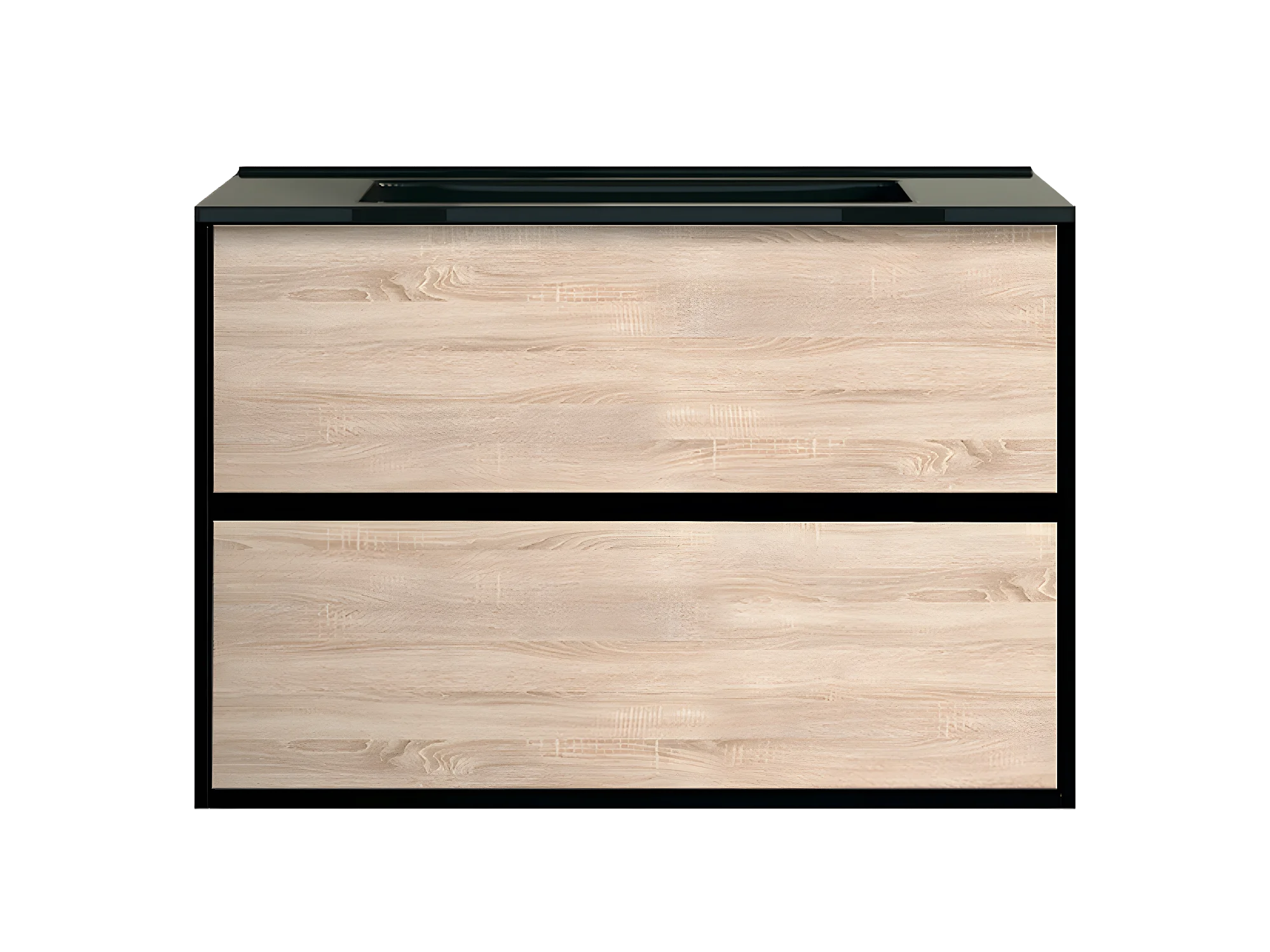 Indus meuble avec simple lavabo effet chêne et noir mat - Essebagno