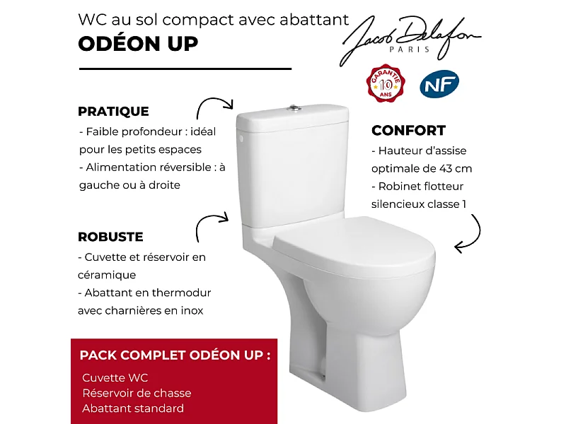 WC à poser compact sortie horizontale JACOB DELAFON Odéon up avec abattant