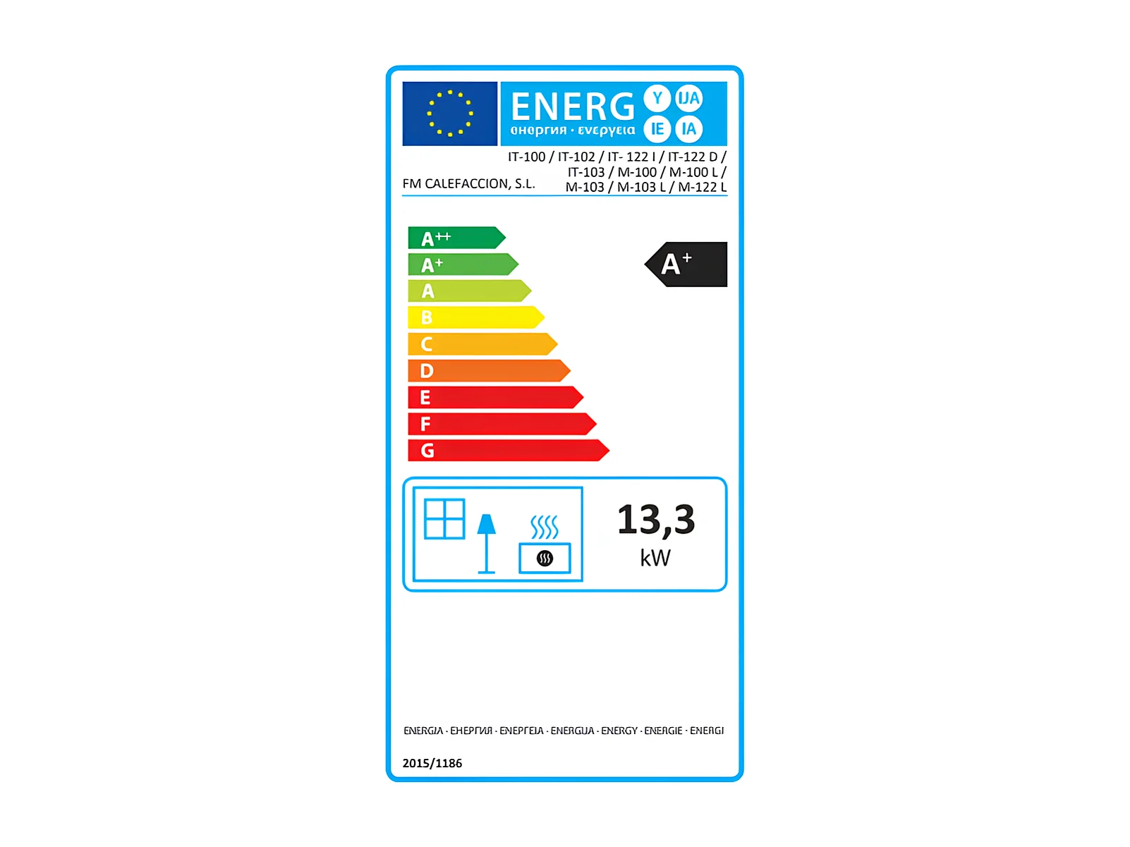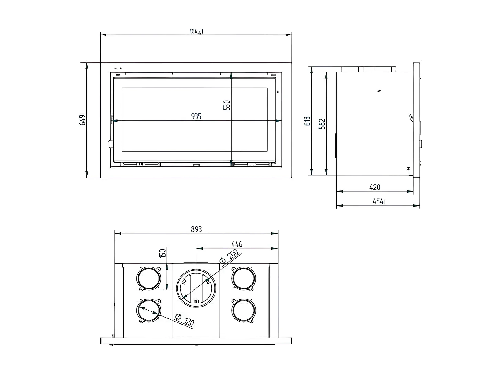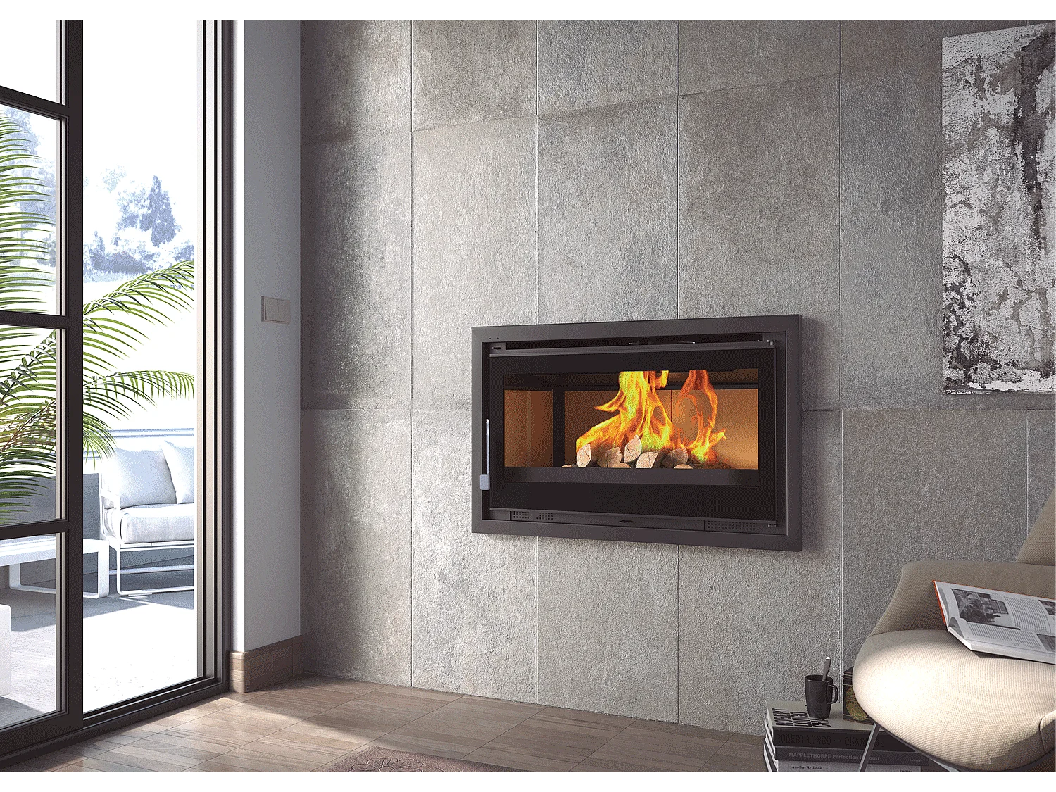Insert à bois en acier - Phoenix - Intérieur en fonte + Verre sérigraphié