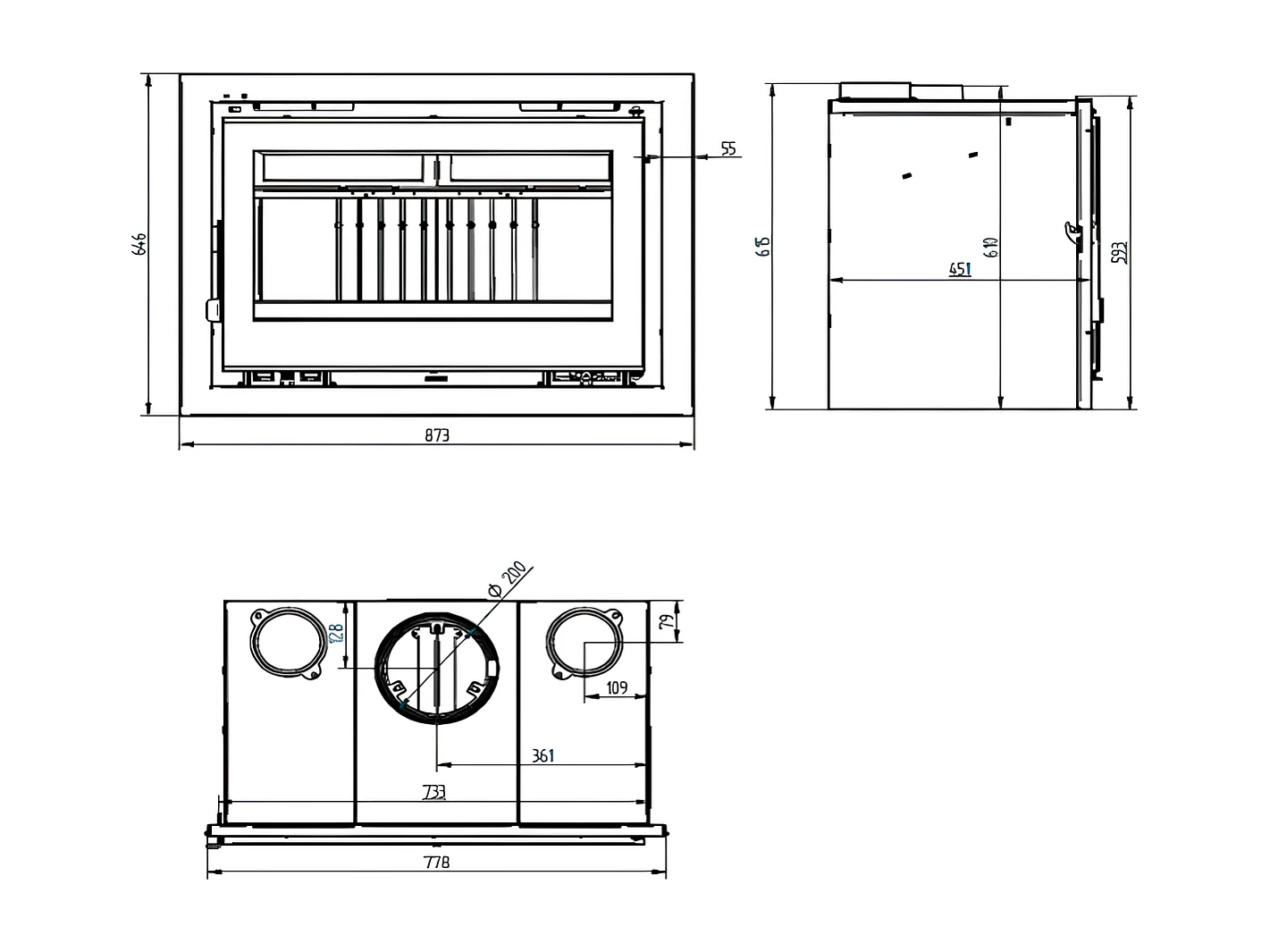 Insert à bois en acier - Vulcain - Intérieur en fonte