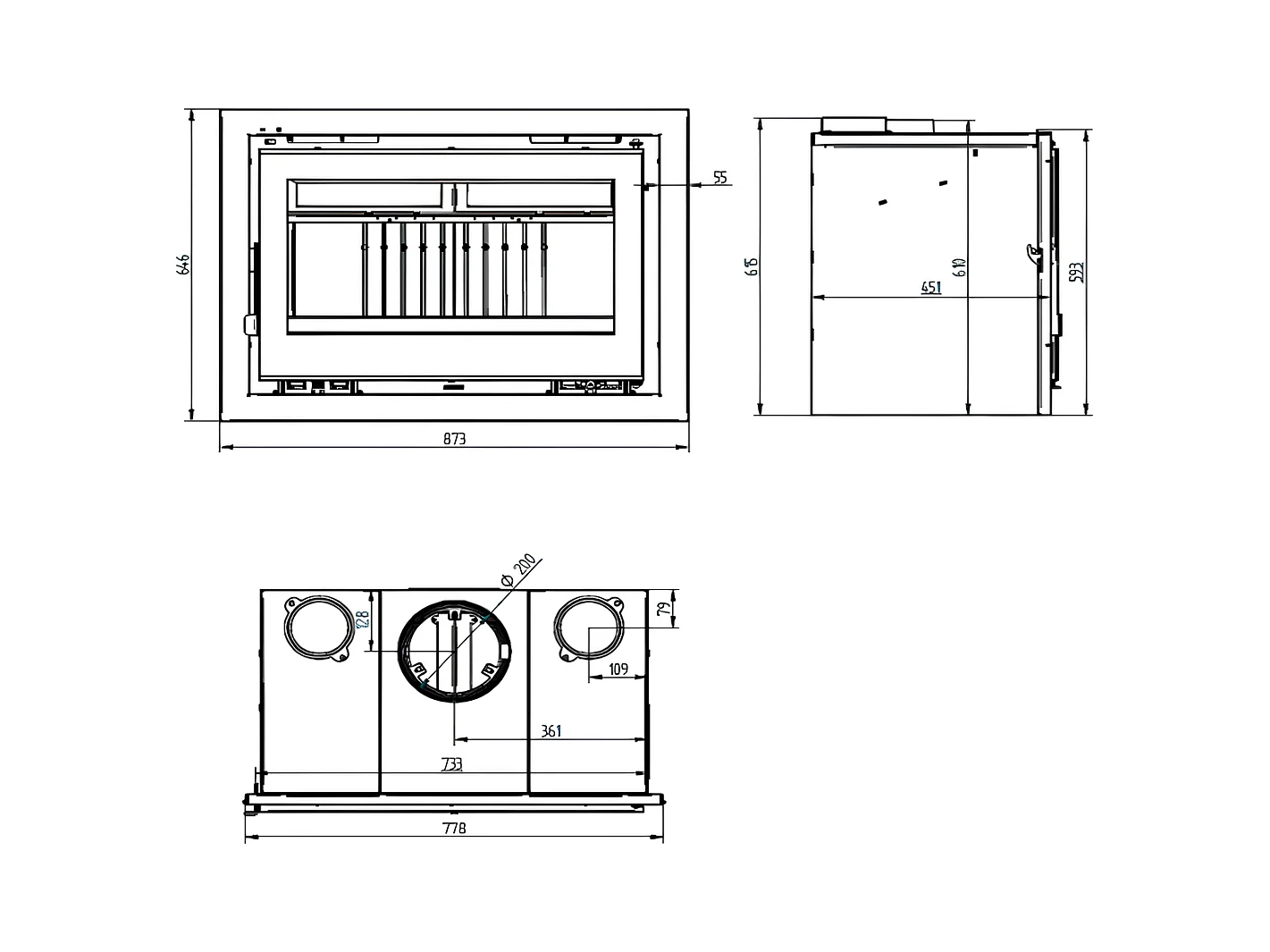 Insert à bois en acier - Vulcain - Intérieur en fonte + Verre sérigraphié