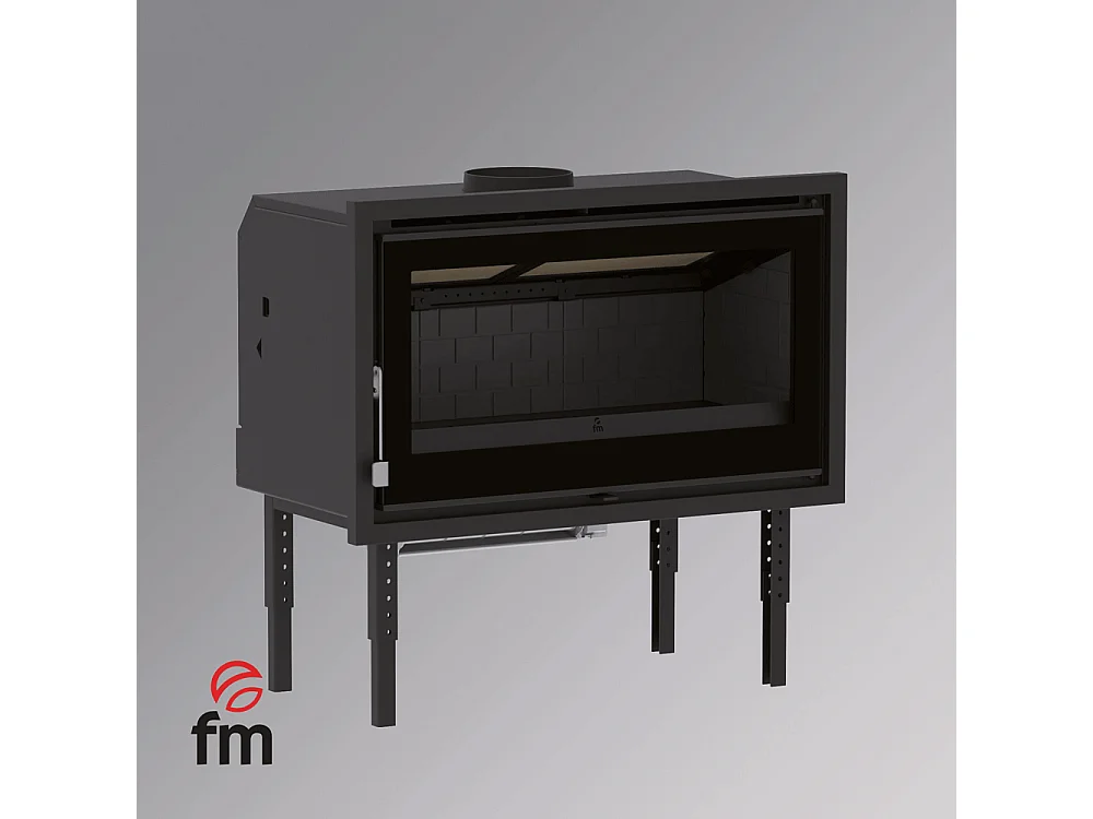 Insert à bois panoramique en acier, verre sérigraphié, triple combustion - TerraFlam - Turbine tangentielle