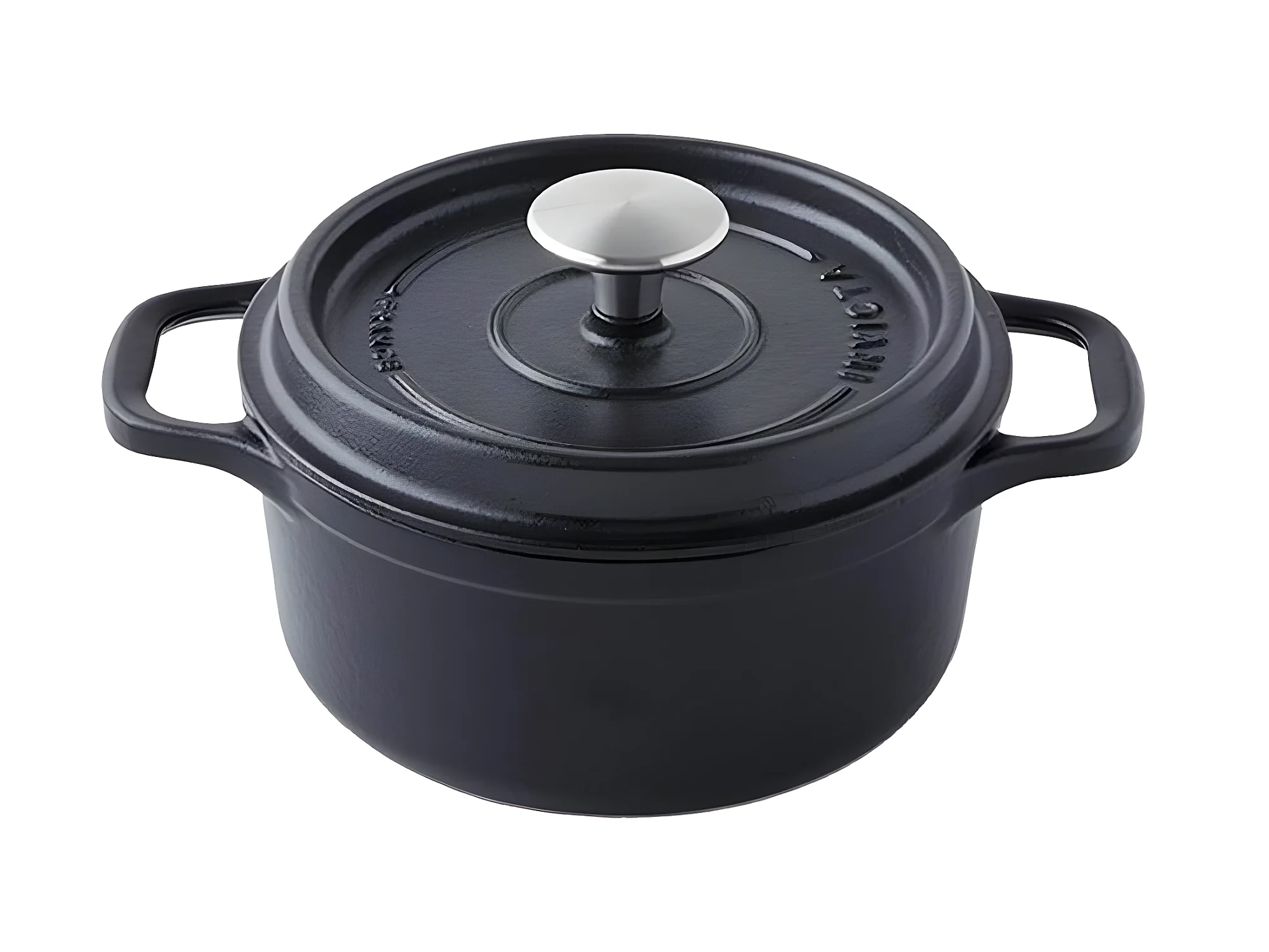 Volcan - Cocotte ronde 20cm fonte de fer émaillée noire avec couvercle