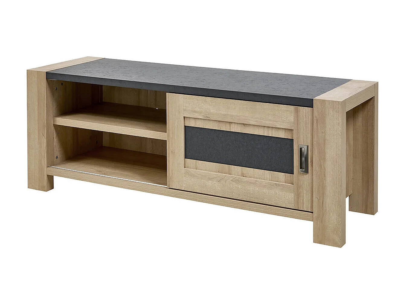 IRIS - Meuble TV 1 Porte Coulissante Imitation Bois