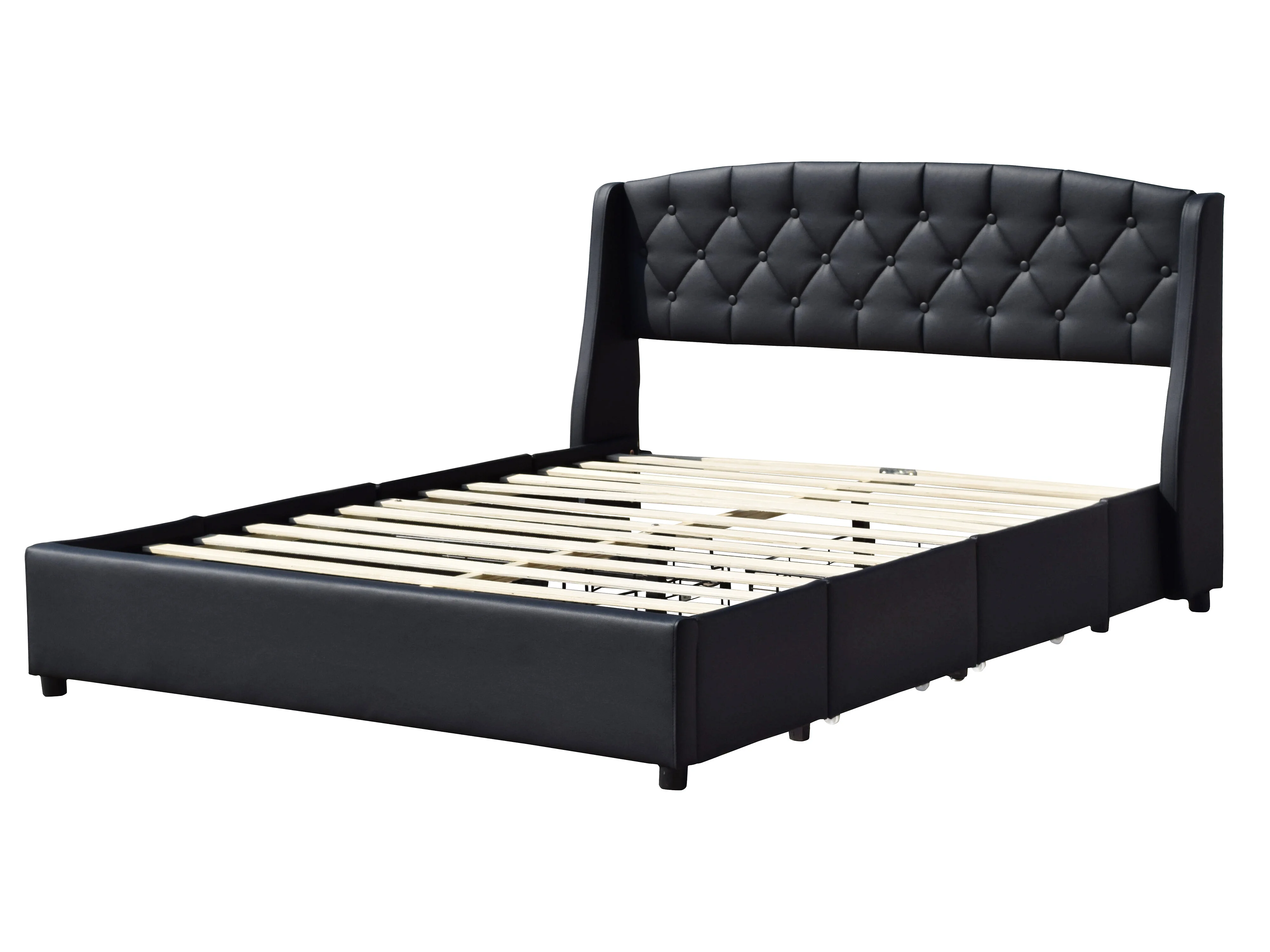 iris - Solide et Confortable Lit 140x190 avec Sommier avec 4 tiroirs + Tete de lit Couleur NOIR + Pieds en 4 cm - 13 Lat