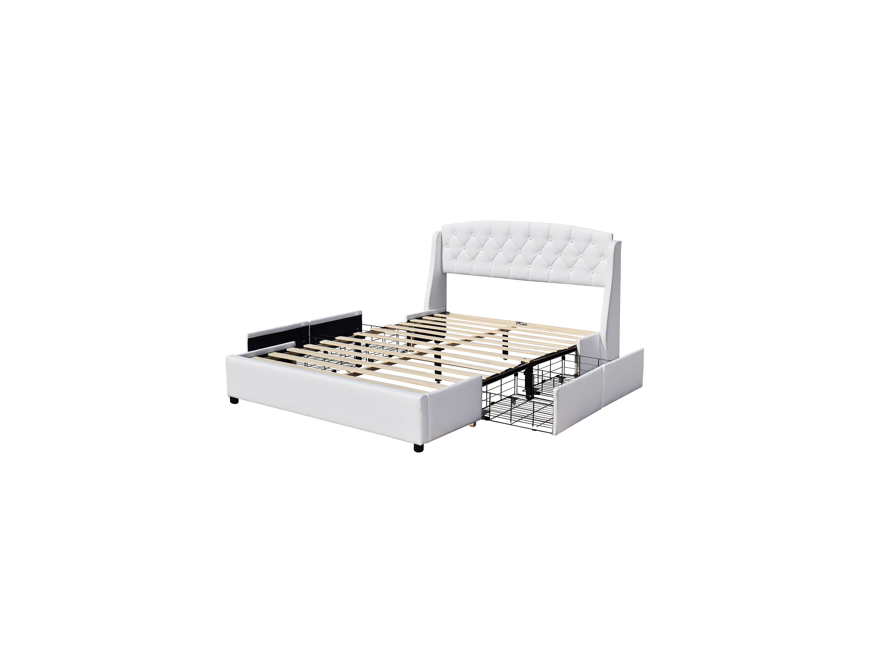 iris - Solide et Confortable Lit 140x200 avec Sommier avec 4 tiroirs + Tete de lit Couleur BLANC + Pieds en 4 cm - 13 La