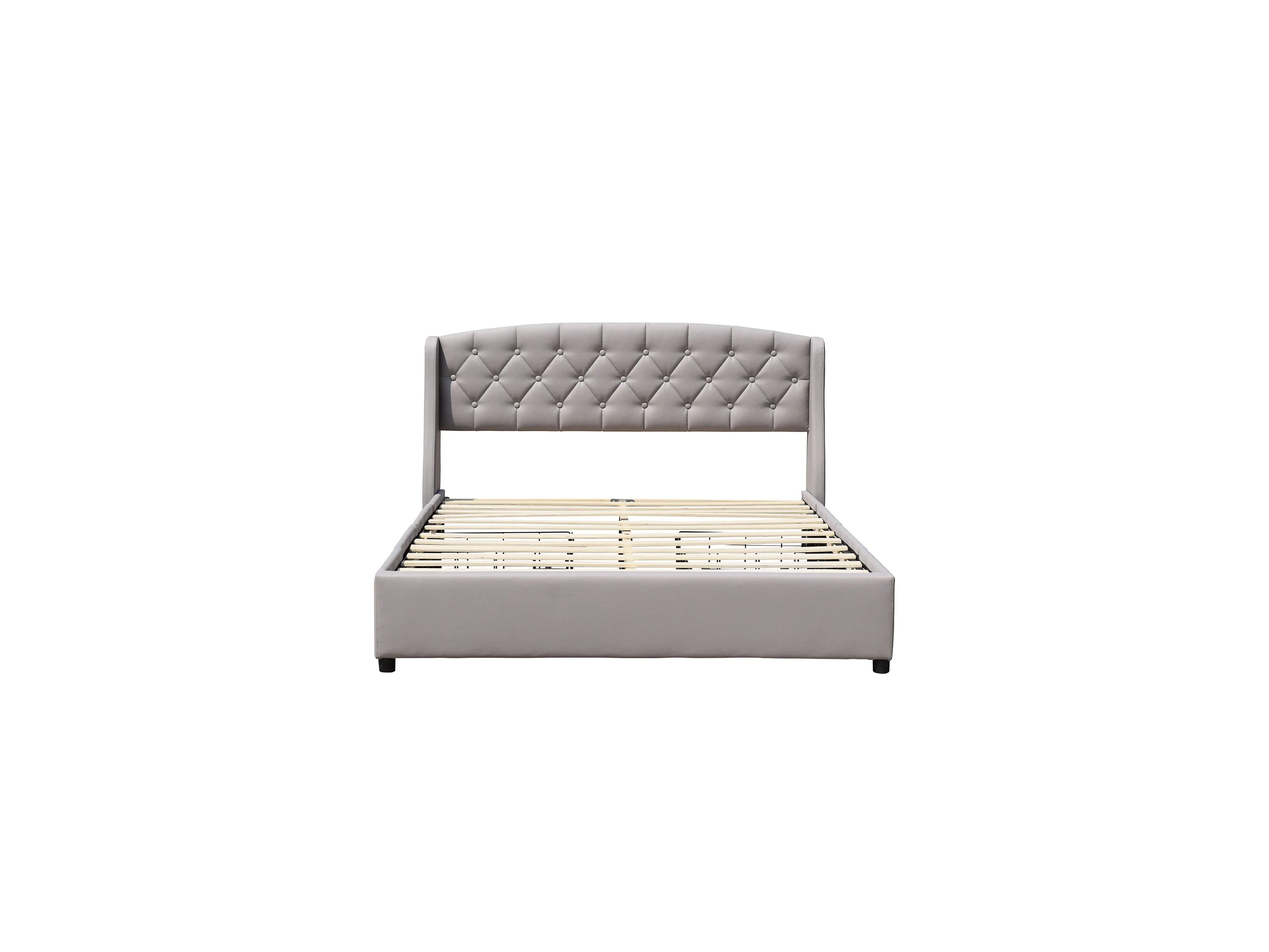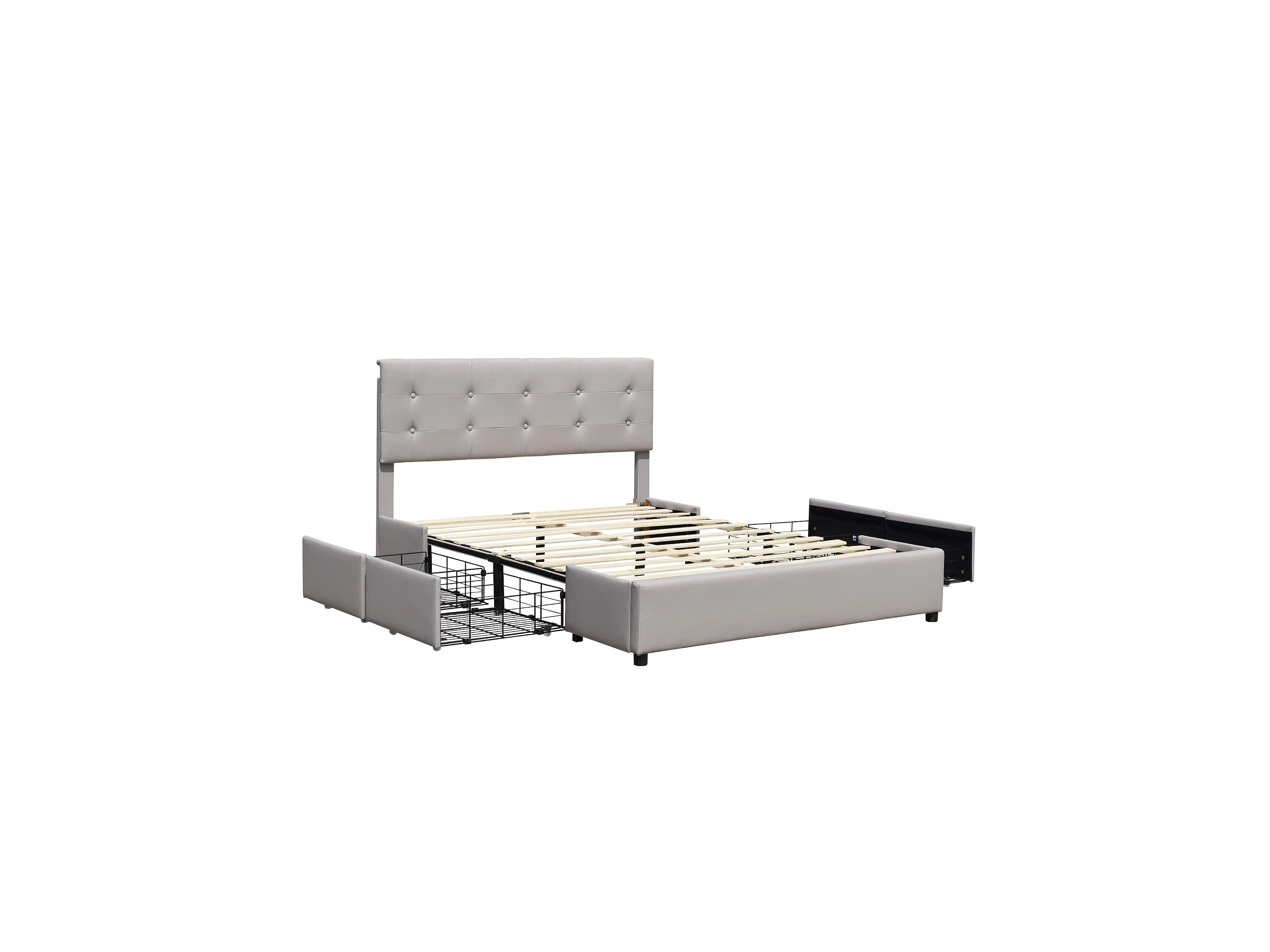 Iris - Solide et Confortable Lit 140x200 avec Sommier avec 4 tiroirs + Tete de lit Couleur Gris + Pieds en 4 cm - 13 Lat