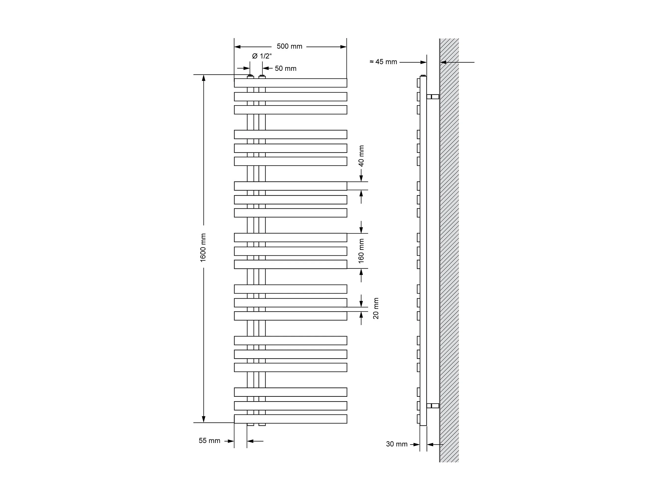 Iron EM Radiator Radiateur sèche-serviettes Radiateur de salle de bain anthracit