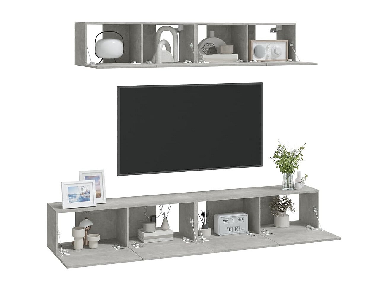 Isandro Ensemble de meubles TV 4 pcs Gris béton Bois d'ingénierie
