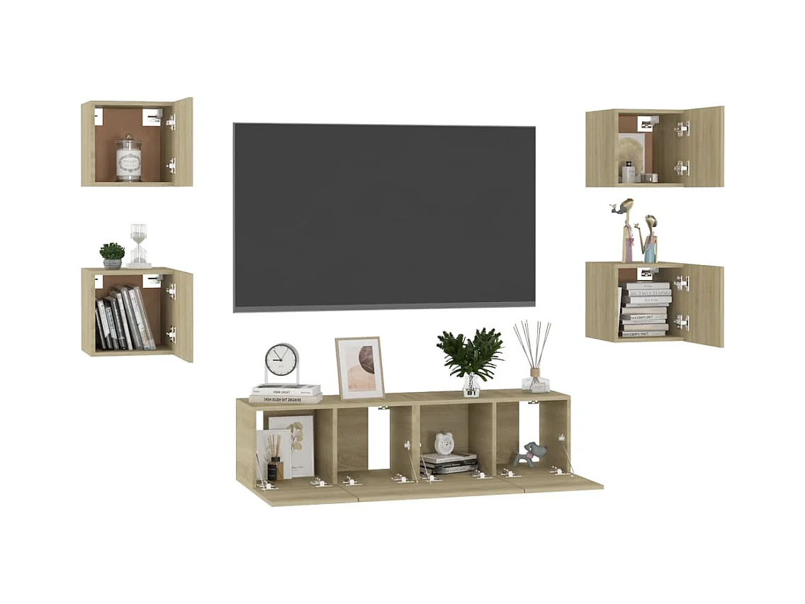 Iseline Ensemble de meubles TV 6 pcs Chêne sonoma Bois d'ingénierie