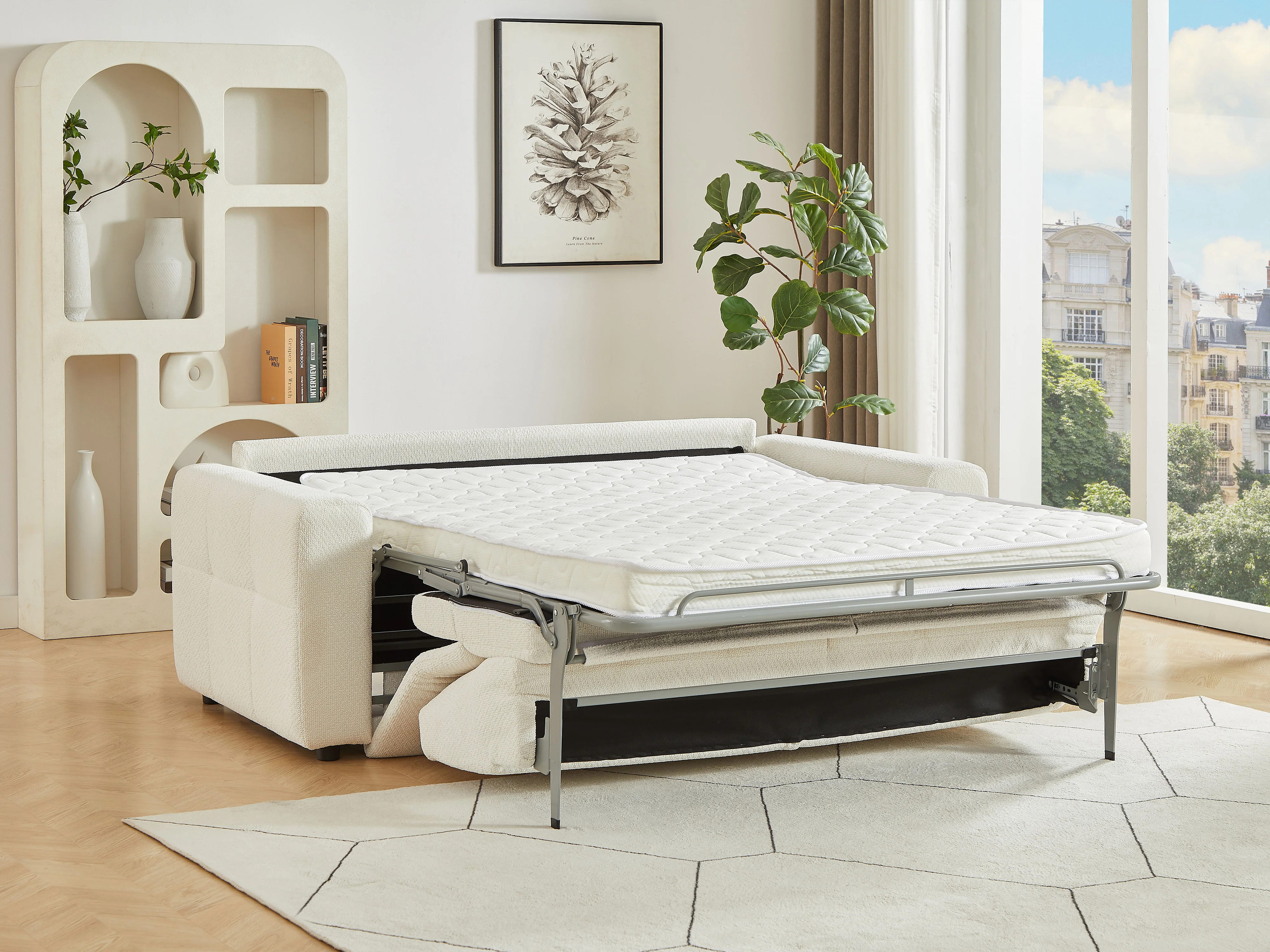 Canapé 3 places convertible en tissu chenille beige ISISTIA