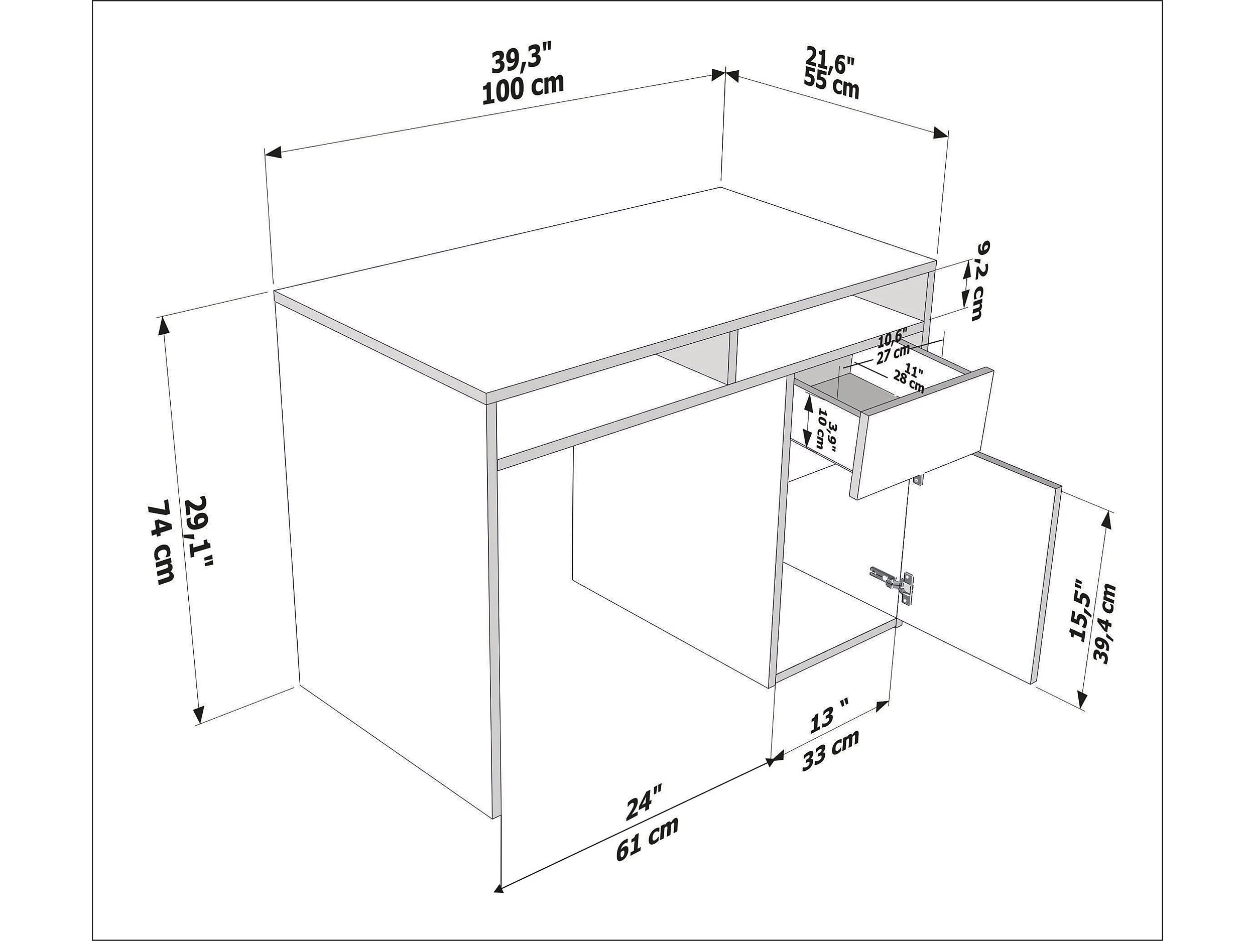 Isla Bureau modern 100 cm Tiroir et Armoire (Cordoba et Blanc)