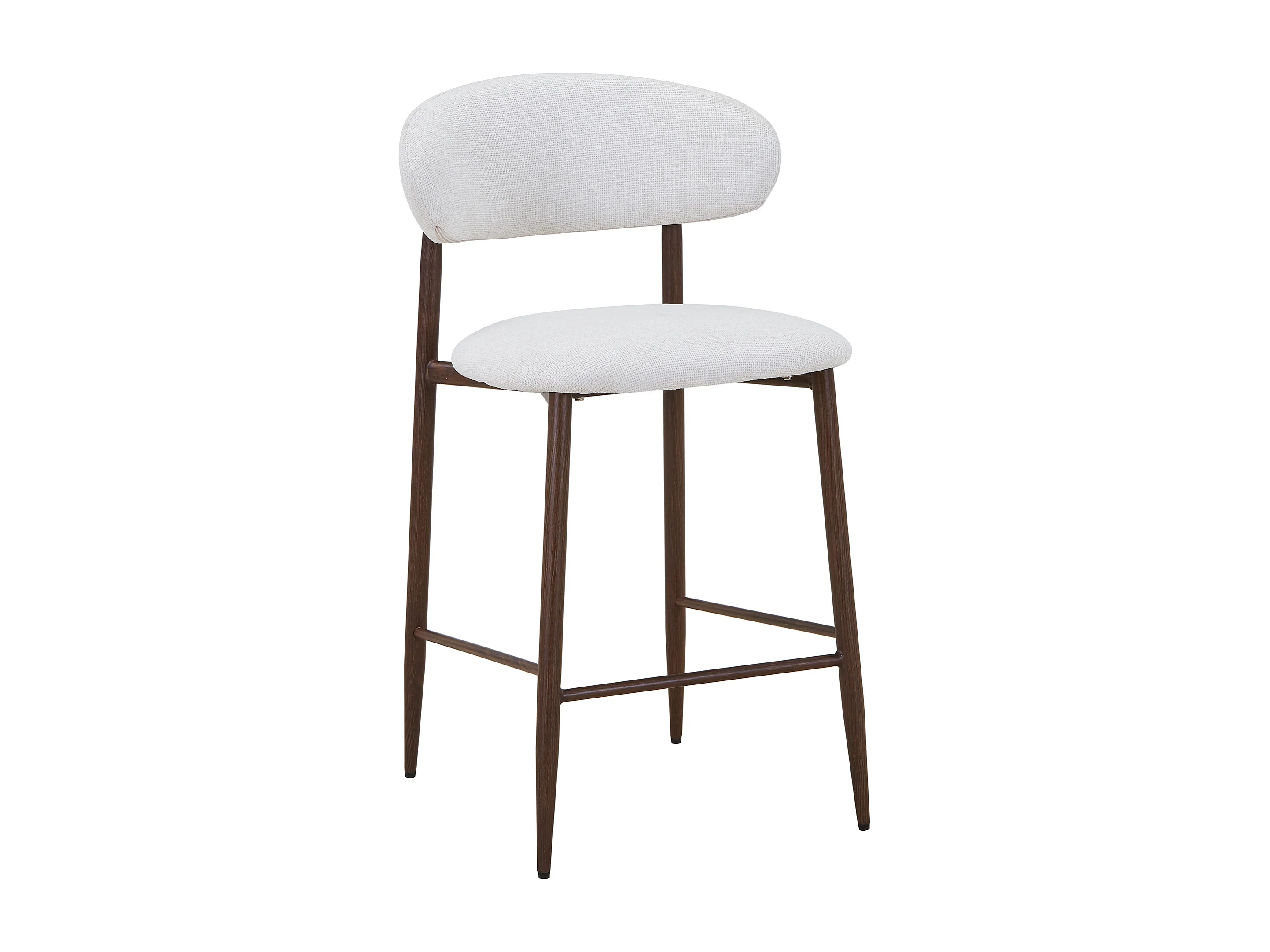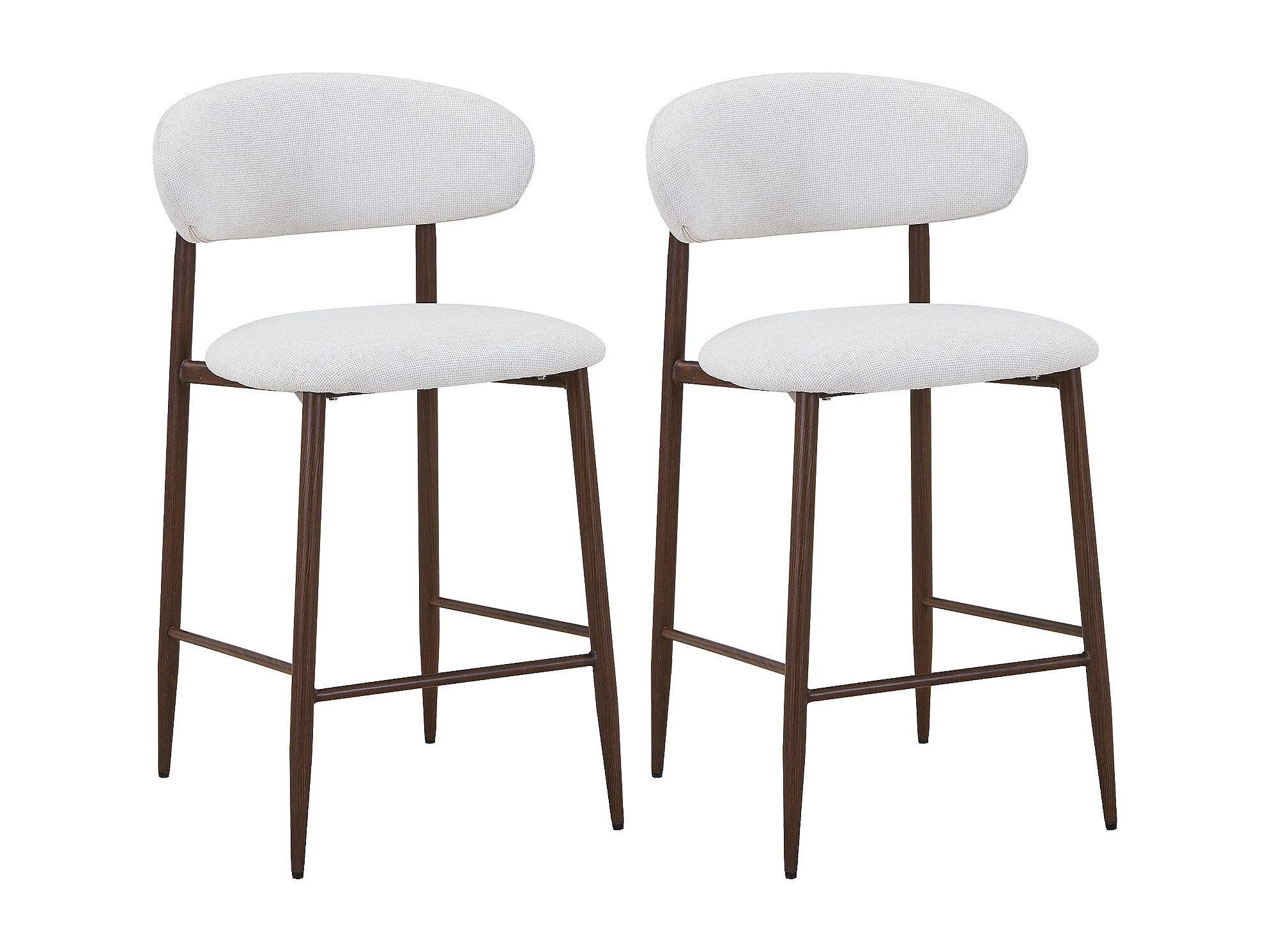Lot de 2 tabourets de bar en tissu texturé et métal effet bois - Crème et Naturel foncé - ISOVAYA