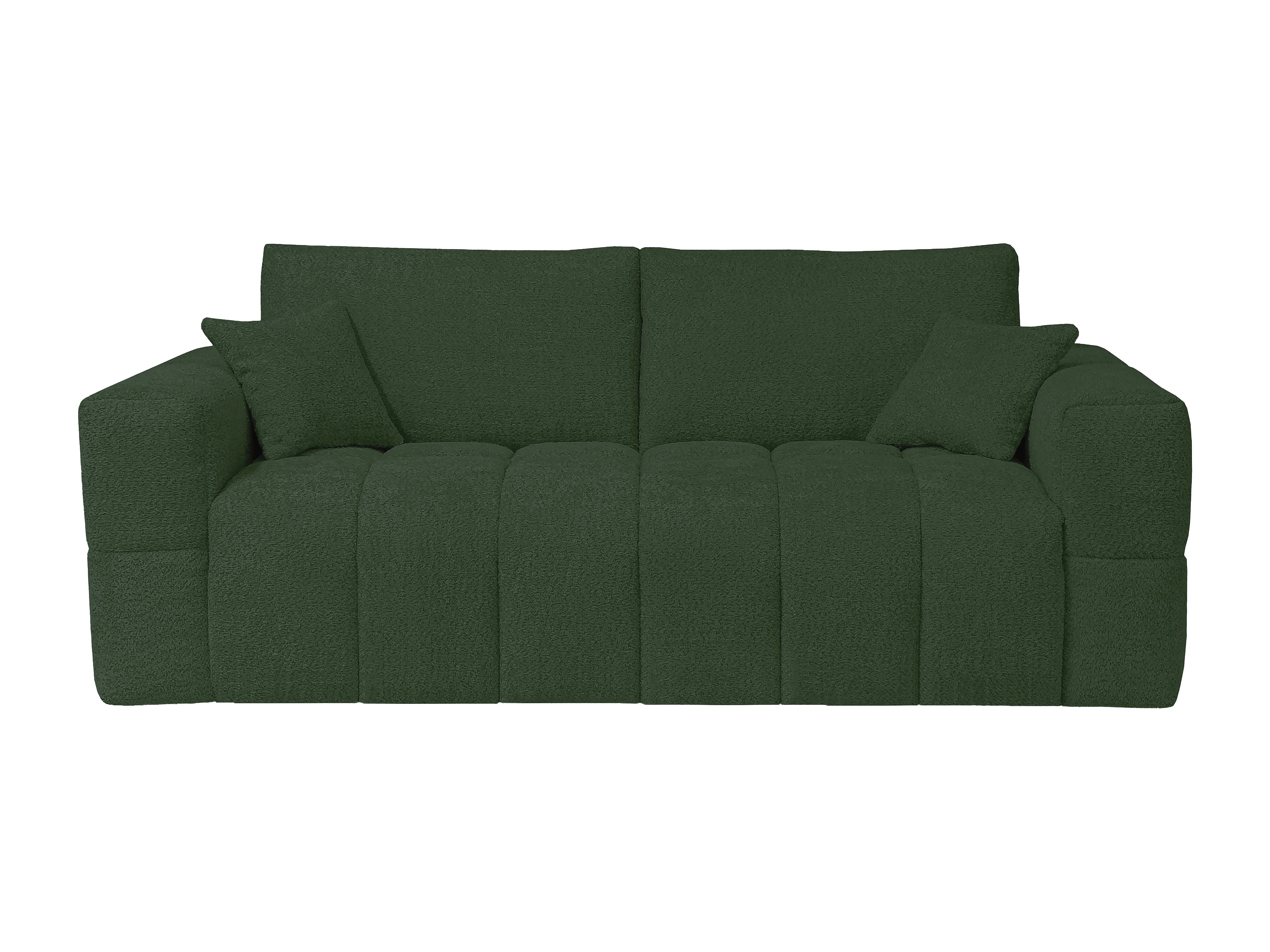 Canapé 4 places convertible express en tissu bouclette vert - Couchage 160 cm - Matelas 16 cm ISSORO