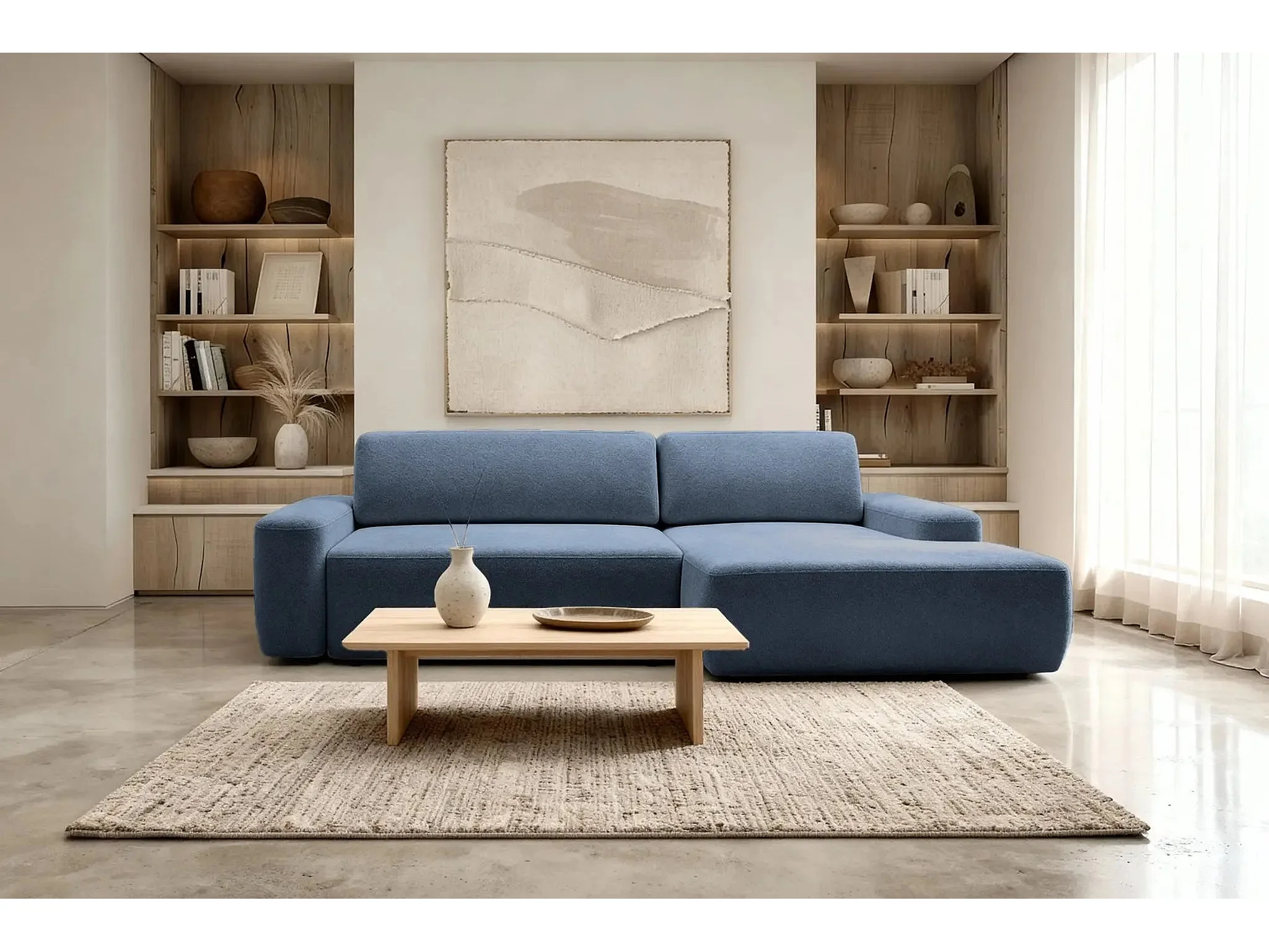 IVY - Canapé d'angle convertible tissu chiné 4 places - Bleu - Droit