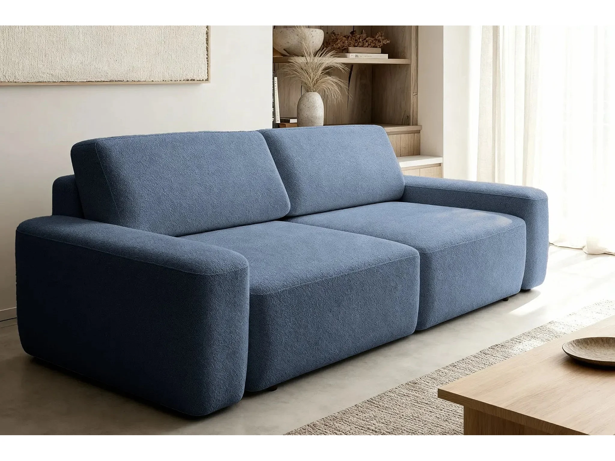 IVY - Canapé droit convertible coffre tissu chiné 3 places - Bleu