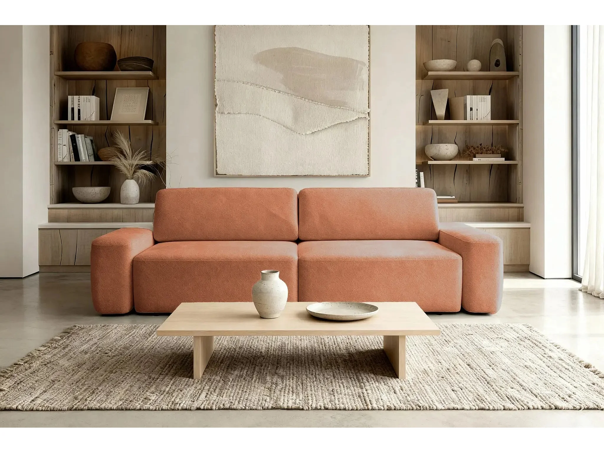 IVY - Canapé droit convertible coffre tissu chiné 3 places - Terracotta