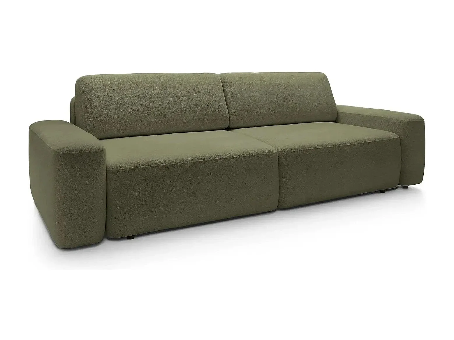 IVY - Canapé droit convertible coffre tissu chiné 3 places - Vert olive