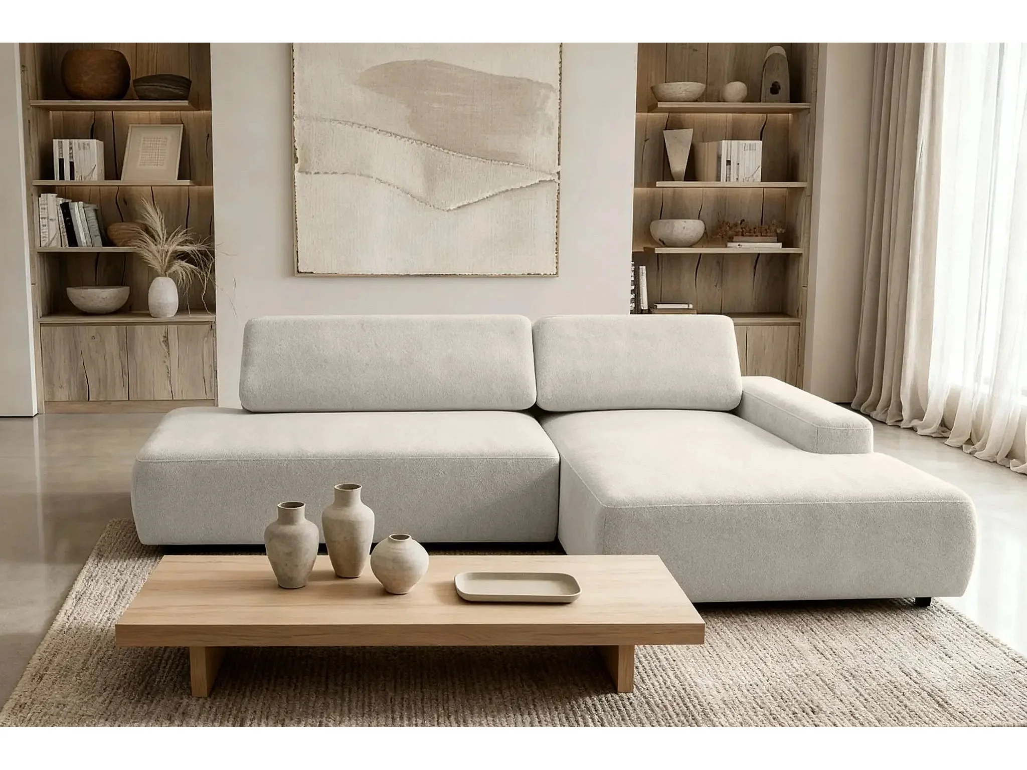 IVY O - Canapé d'angle convertible coffre tissu chiné 3 places - Biege - Gauche