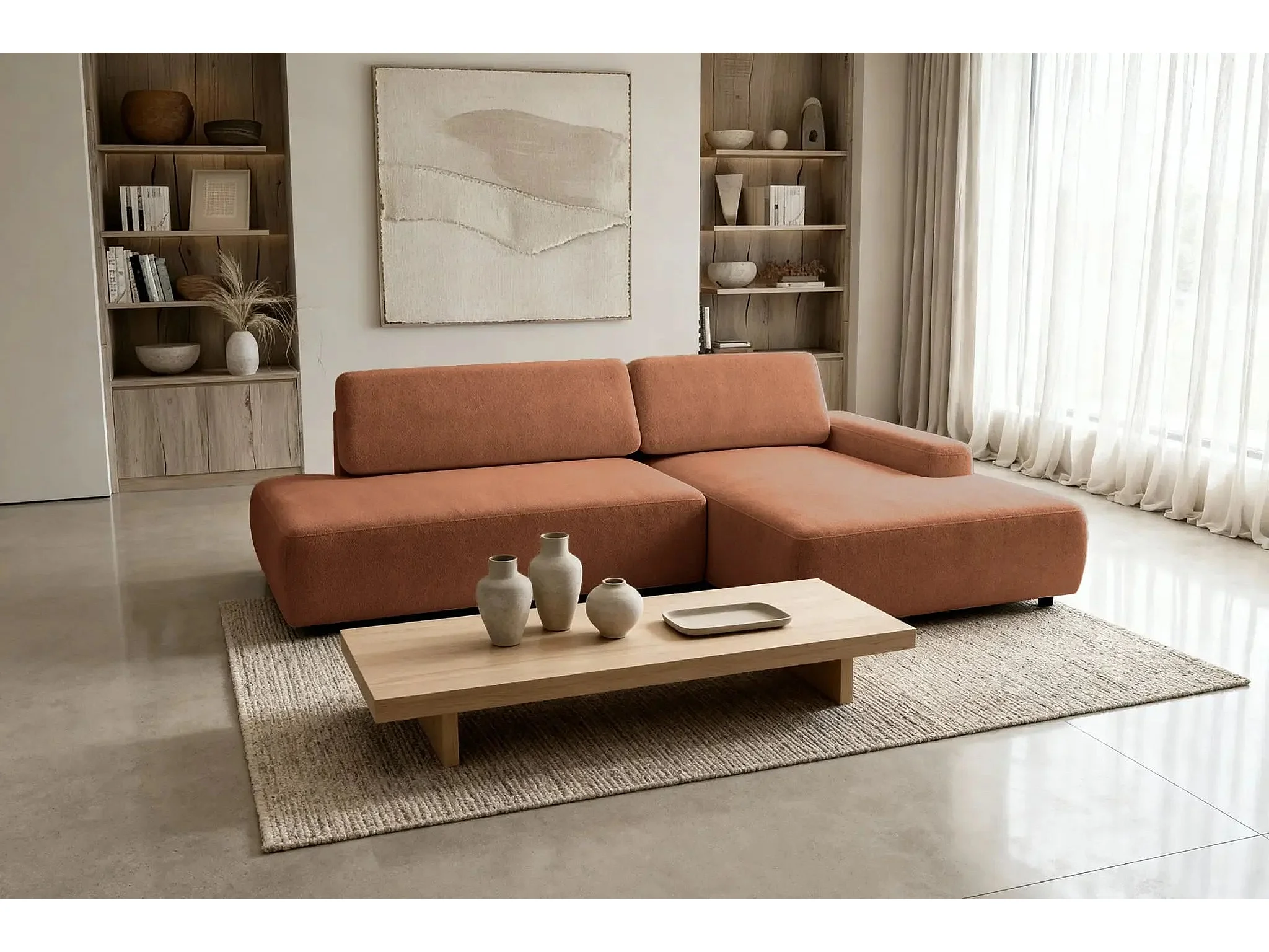 IVY O - Canapé d'angle convertible coffre tissu chiné 3 places - Terracotta -Gauche