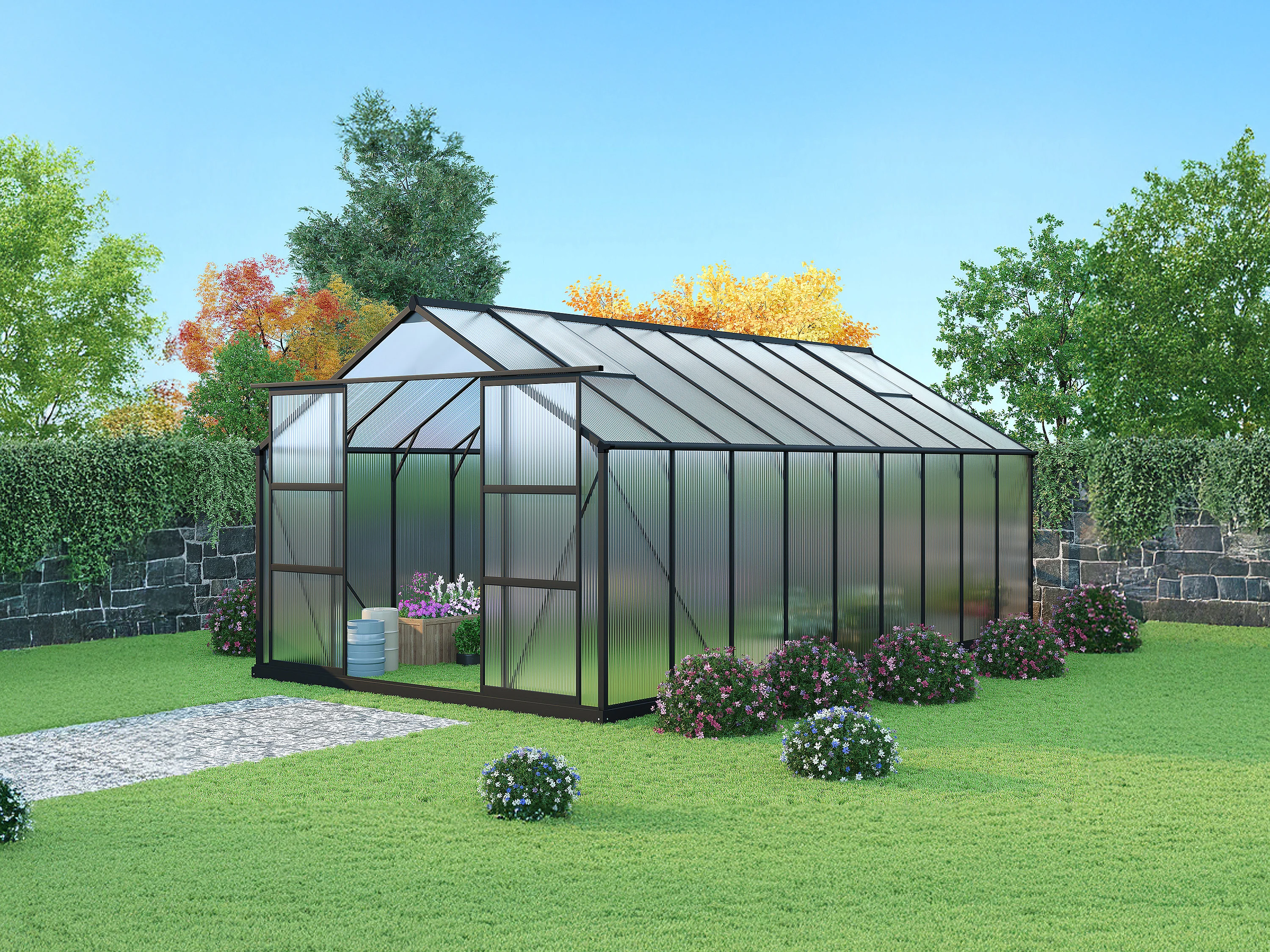 Serre de Jardin en polycarbonate de 16,9 m² avec embase - Anthracite - IXORA