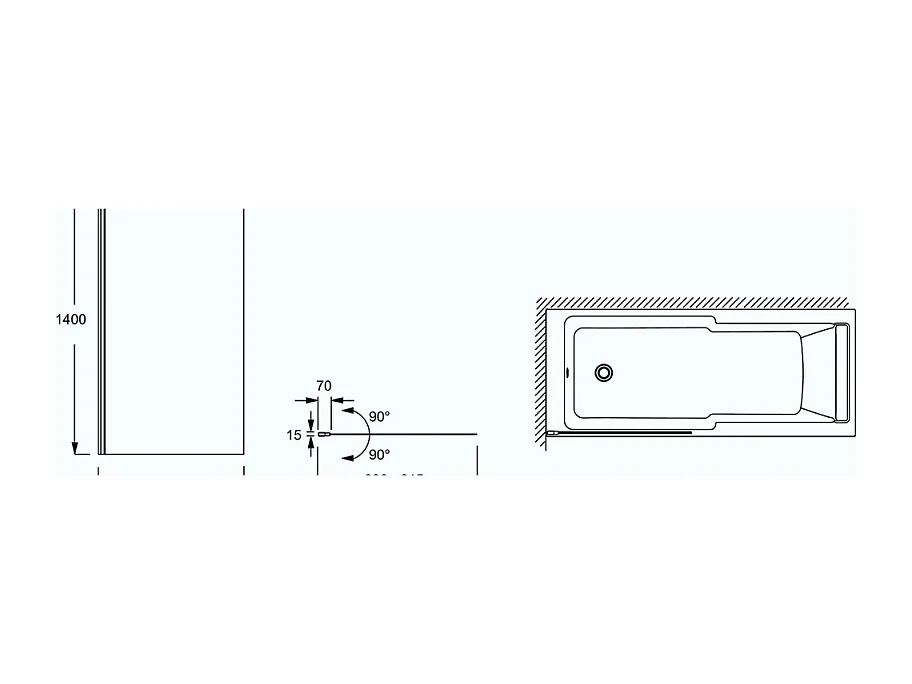 Baignoire JACOB DELAFON Corvette 170x70 cm + Pare bain