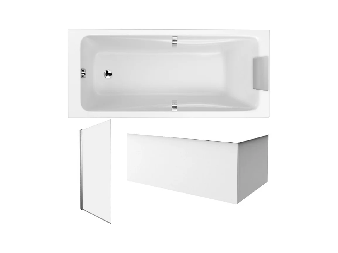 Pack baignoire droite 170 X 70 JACOB DELAFON Odéon up + pare bain 1 volet chromé + tablier en angle + vidage