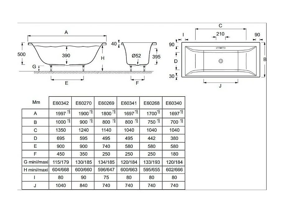 JACOB DELAFON Baignoire droite 170 X 75 Evok acrylique