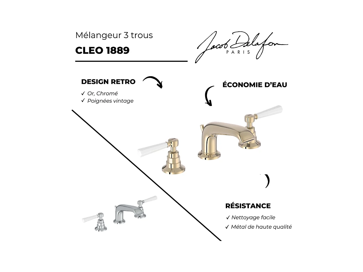 Mélangeur 3 trous JACOB DELAFON Cléo 1889 chrome