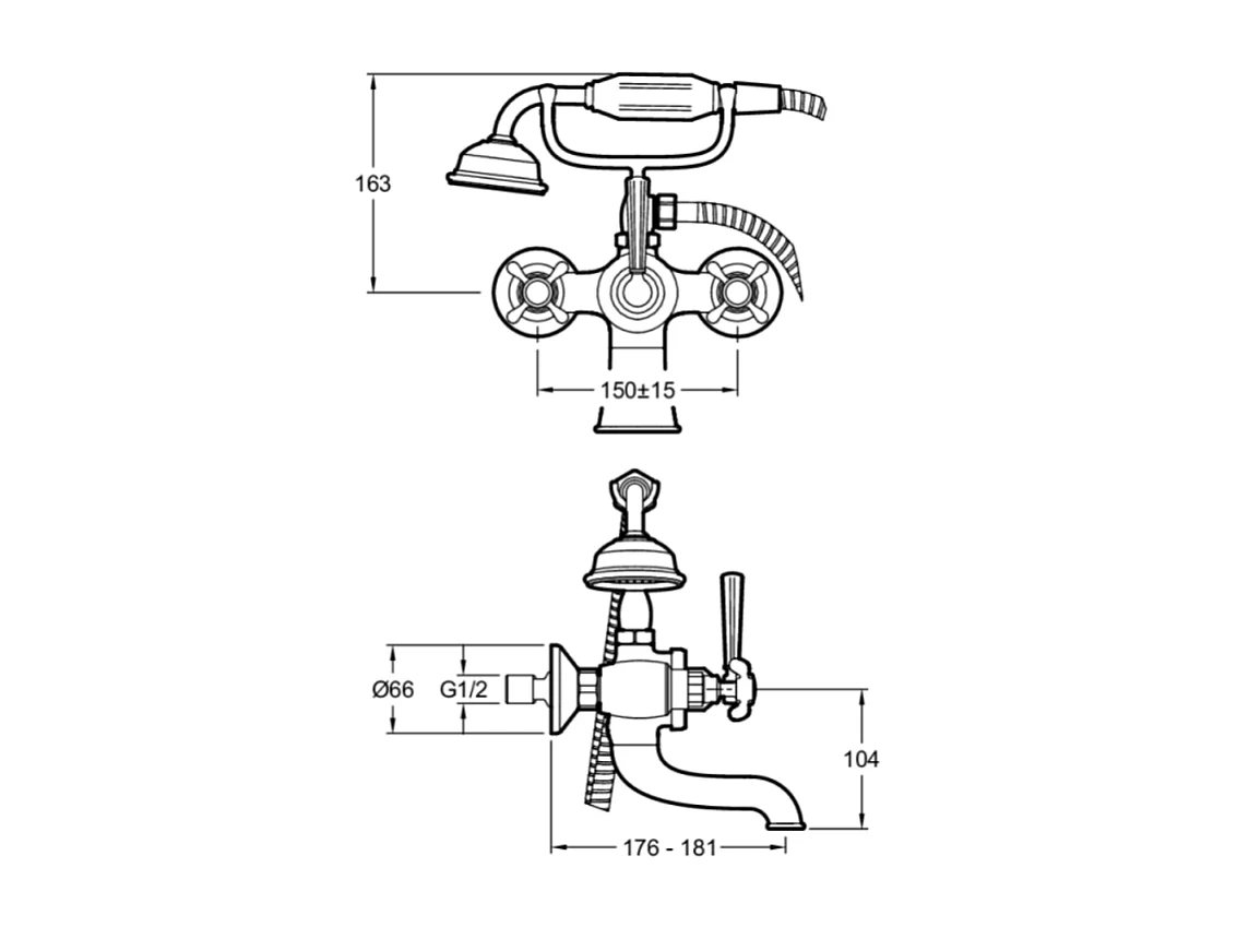 Mélangeur baignoire JACOB DELAFON Cléo 1889 avec pommeau douche Or beige