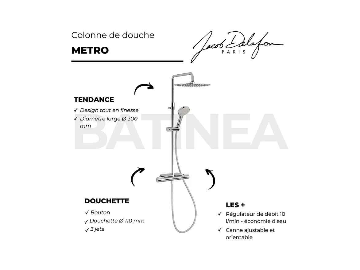 Colonne de douche thermostatique JACOB DELAFON Metro chromée