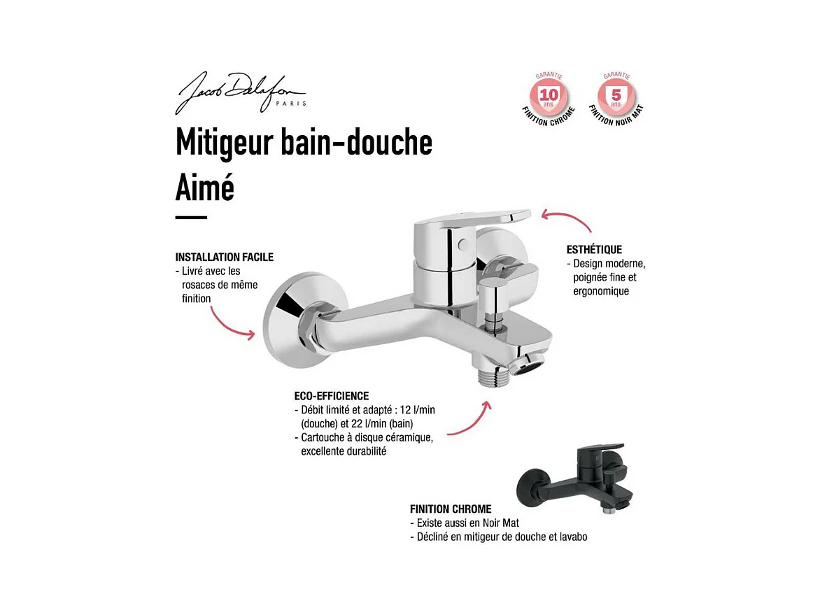 Mitigeur bain-douche JACOB DELAFON Aimé chrome