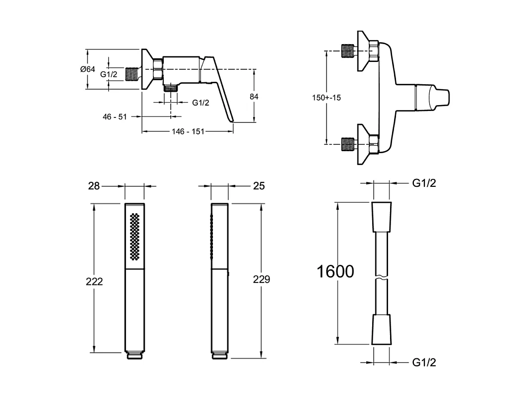 Mitigeur douche JACOB DELAFON Aimé + douchette stick Shift Ellipse + flexible 1,6m noir et chromé