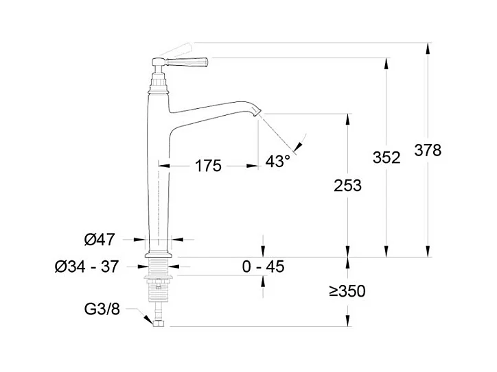 Mitigeur lavabo haut JACOB DELAFON Cléo 1889 or beige