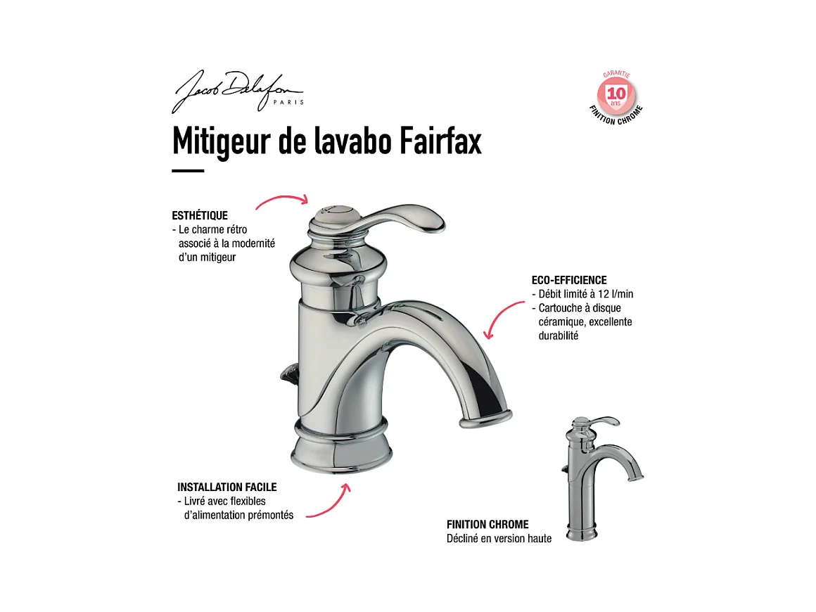 Mitigeur lavabo haut JACOB DELAFON Fairfax