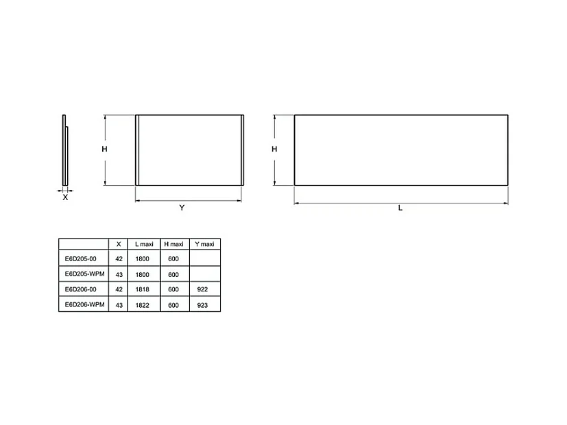 JACOB DELAFON Tablier frontal pour baignoire rectangulaire 180 x 90 x 60 cm installation angle Blanc mat