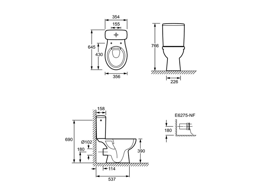 WC à poser sans bride sortie horizontale JACOB DELAFON Patio avec abattant standard