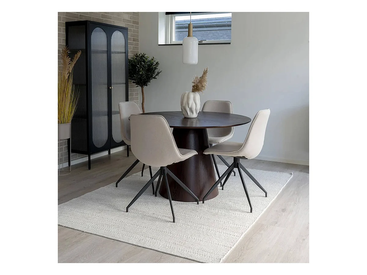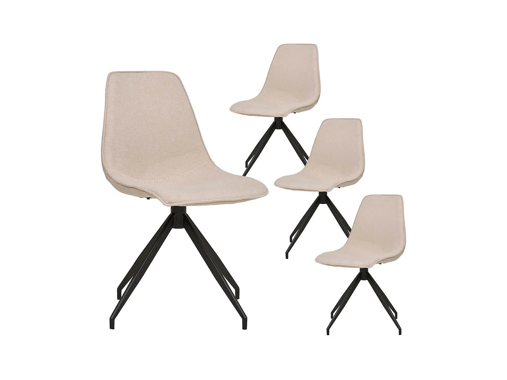 JACOB - Lot de 4 Chaises Tissu Beige Chiné Pied Pivotant Métal Noir