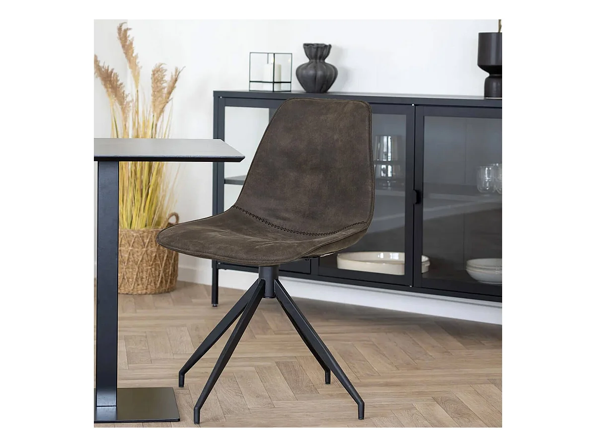 JACOB - Lot de 6 Chaises Tissu Microfibre Gris foncé Pied Pivotant Métal Noir