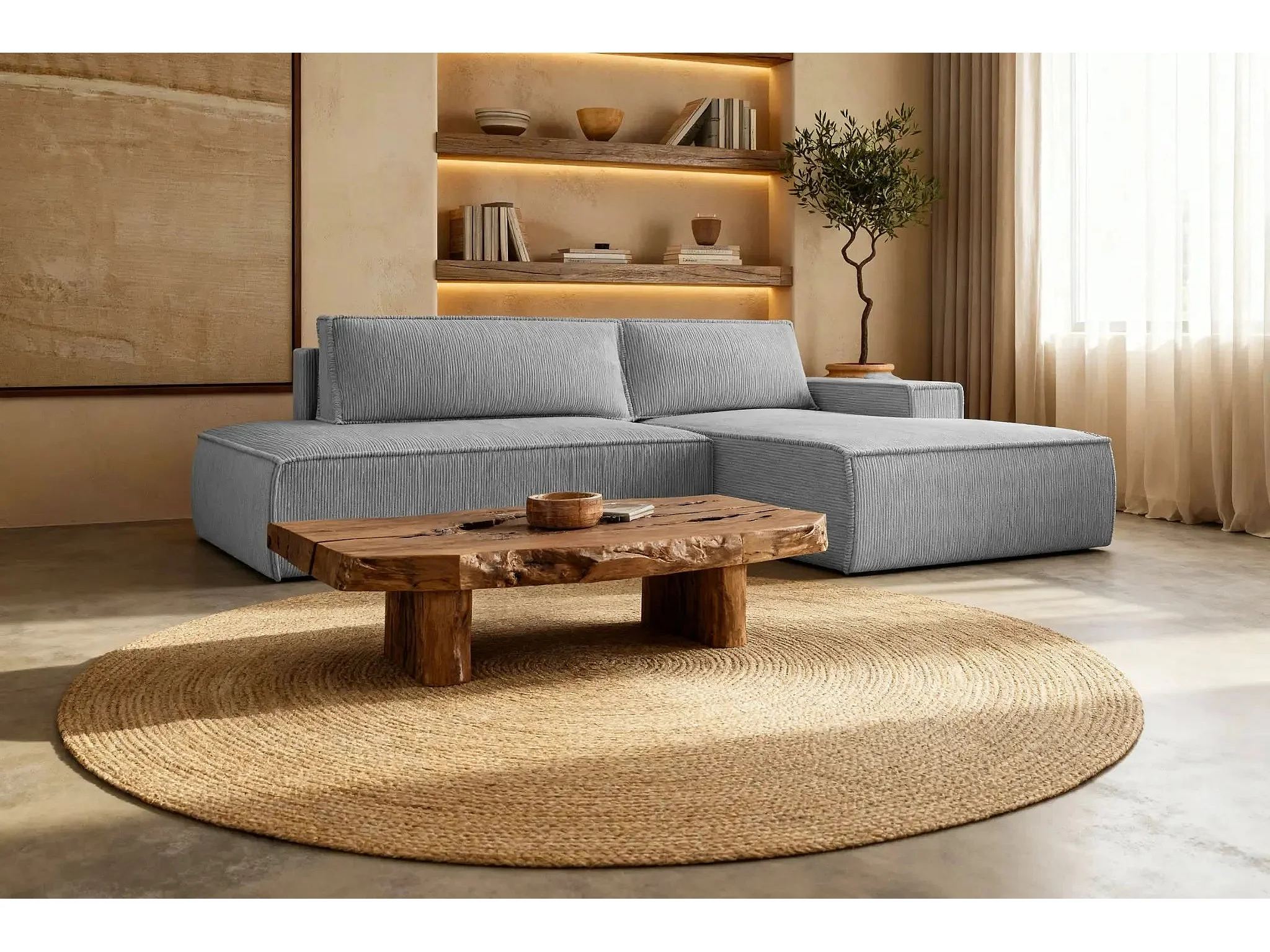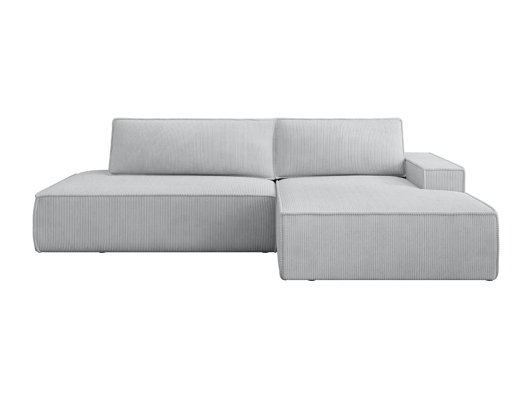 JADE - Canapé d'angle convertible velours côtelé - Gris clair - Droit