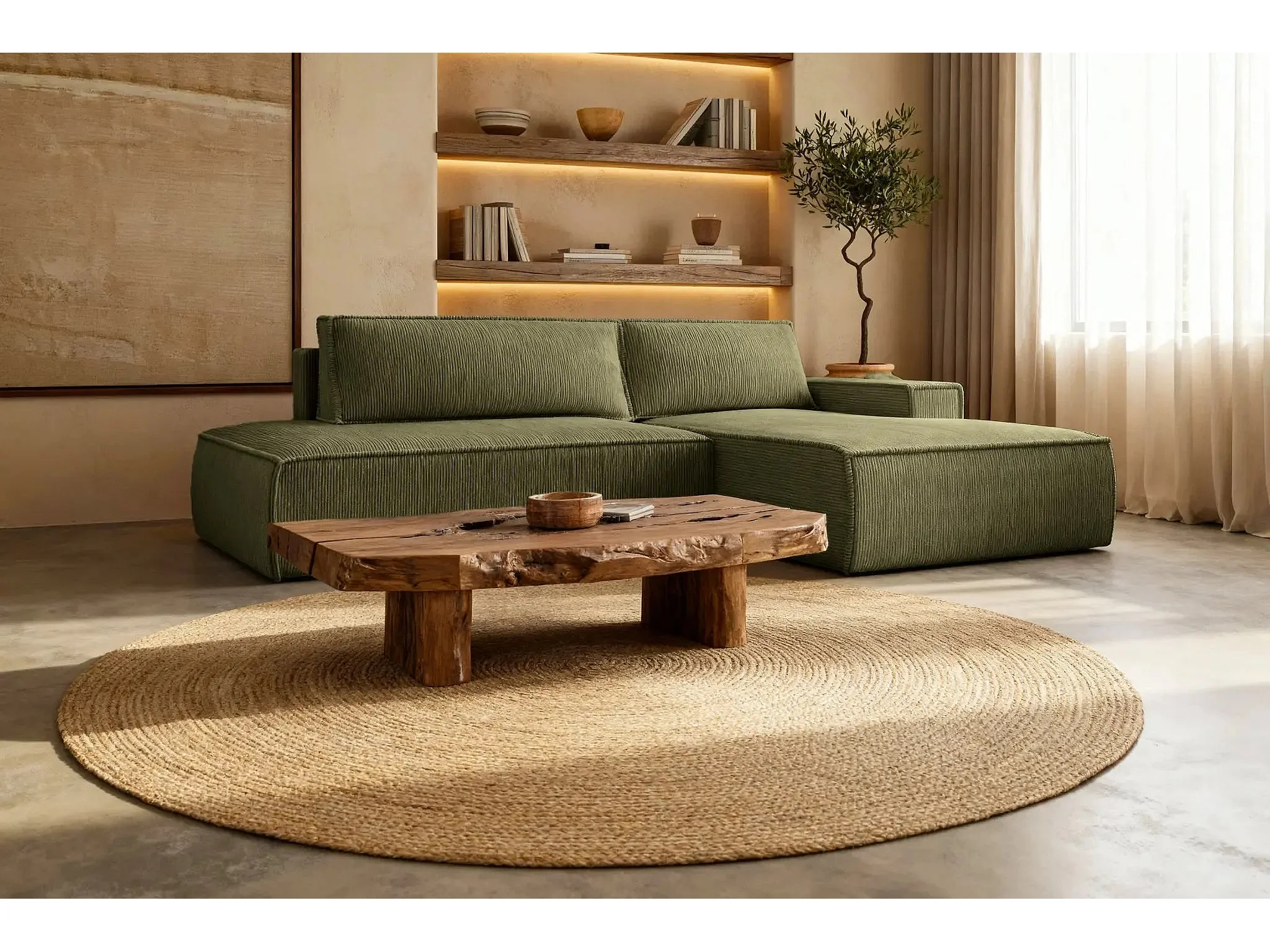 JADE - d'angle convertible velours côtelé - Vert - Gauche