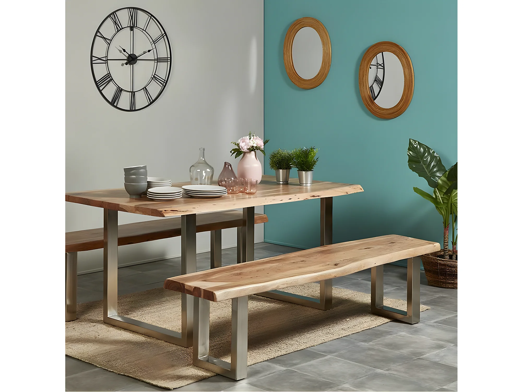 JAIPUR - Banc 160cm Acacia et Métal Chromé Piètement U