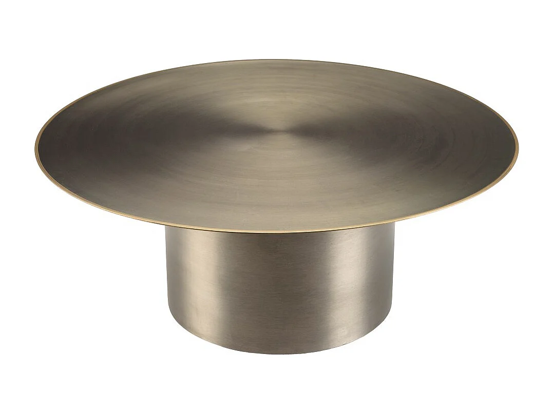 JAMES - Table basse ronde 80x80cm en métal noir et bordure dorée