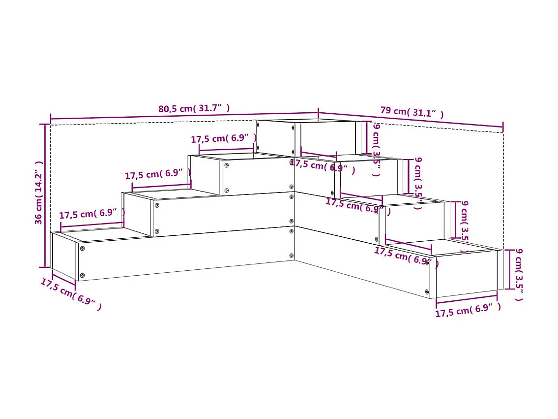 Jardinière 4 niveaux 80,5x79x36 blanc bois de pin massif