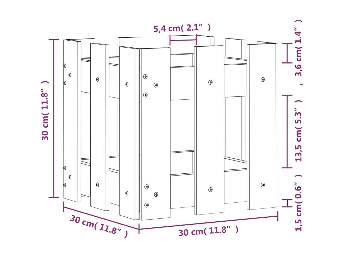 Jardinière avec design de clôture 30x30x30 Douglas massif