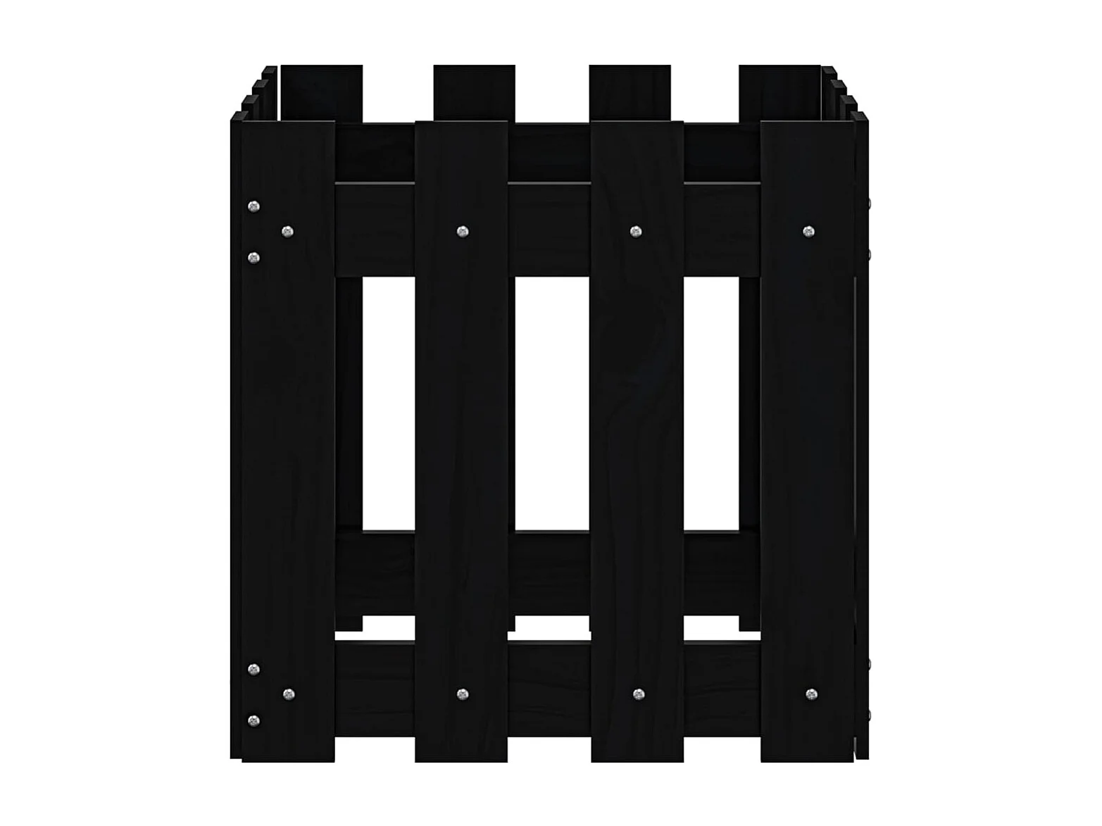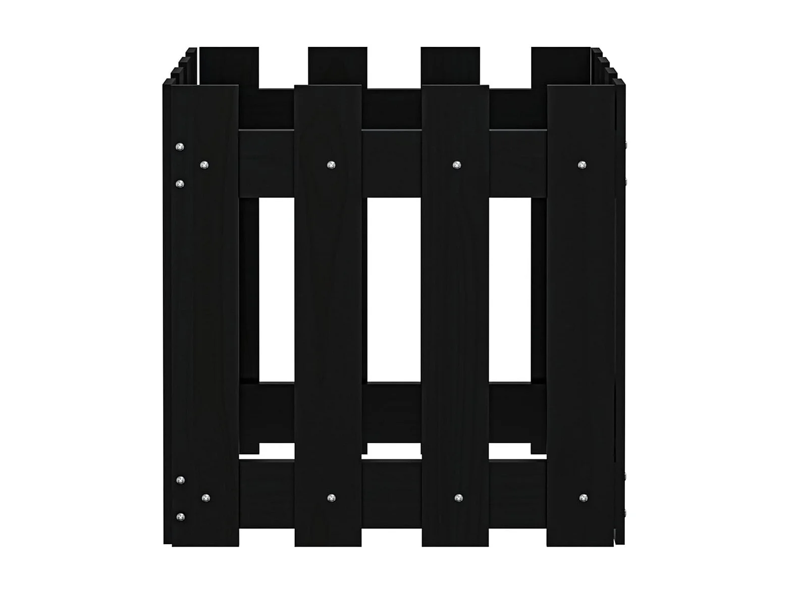 Jardinière avec design de clôture noir 40x40x40 pin massif