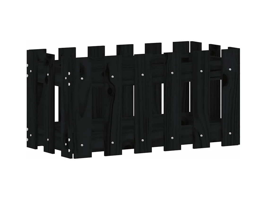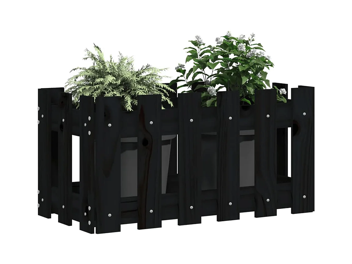 Jardinière avec design de clôture noir 60x60x60 pin massif
