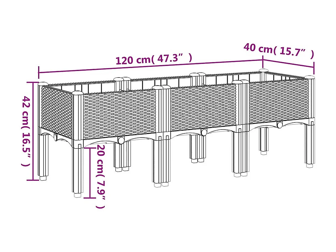 Jardinière avec pieds gris 120x40x42 cm PP